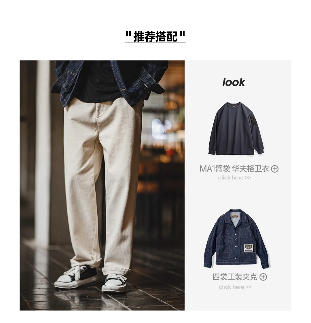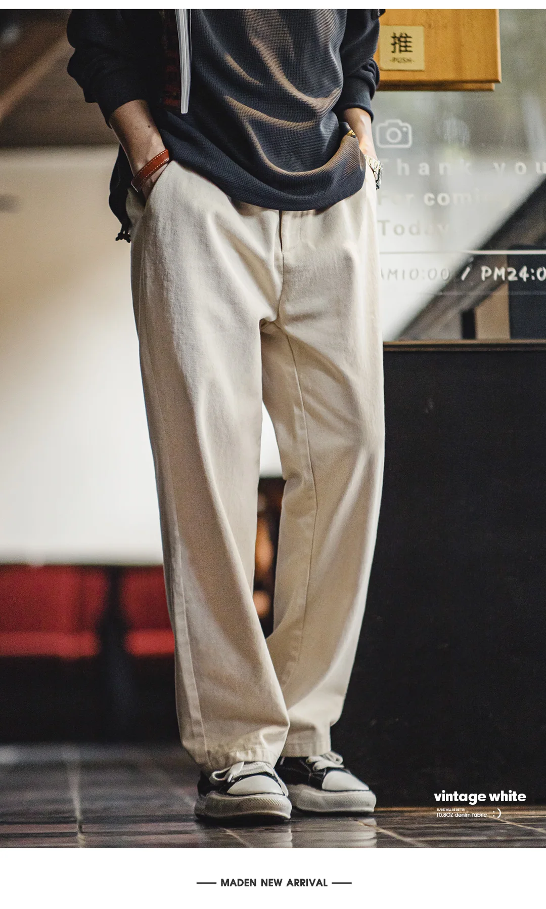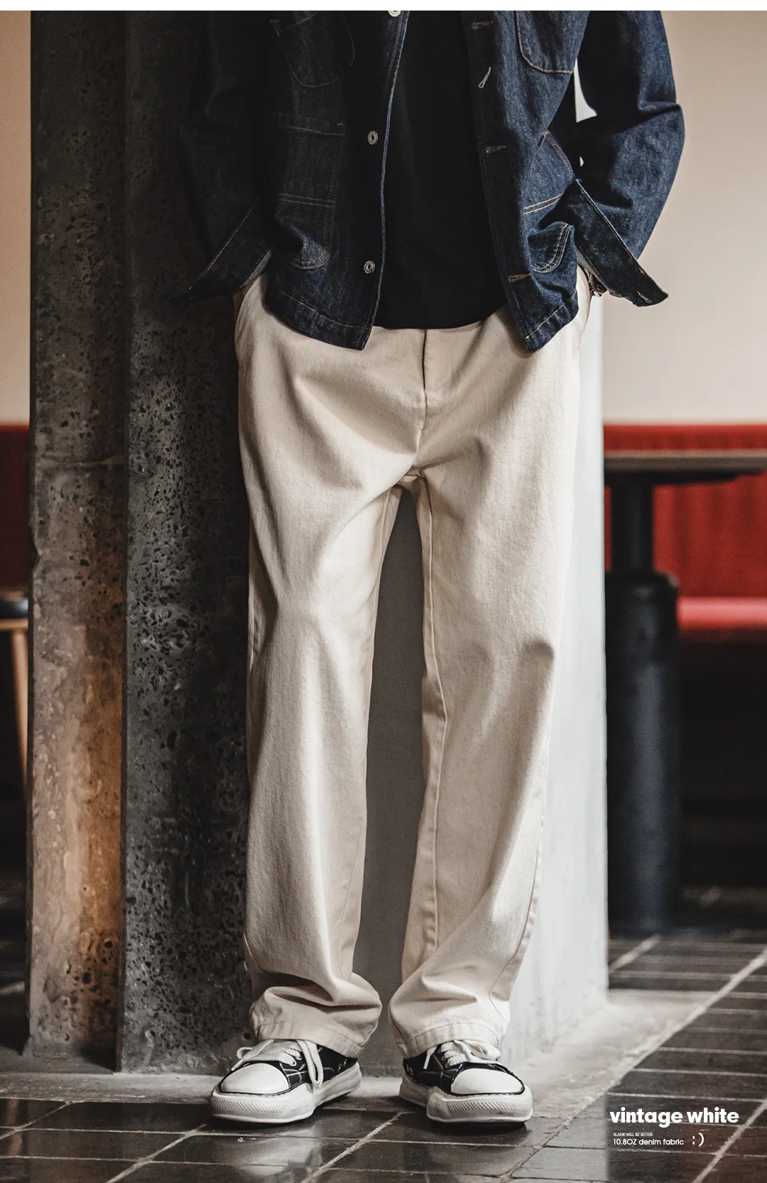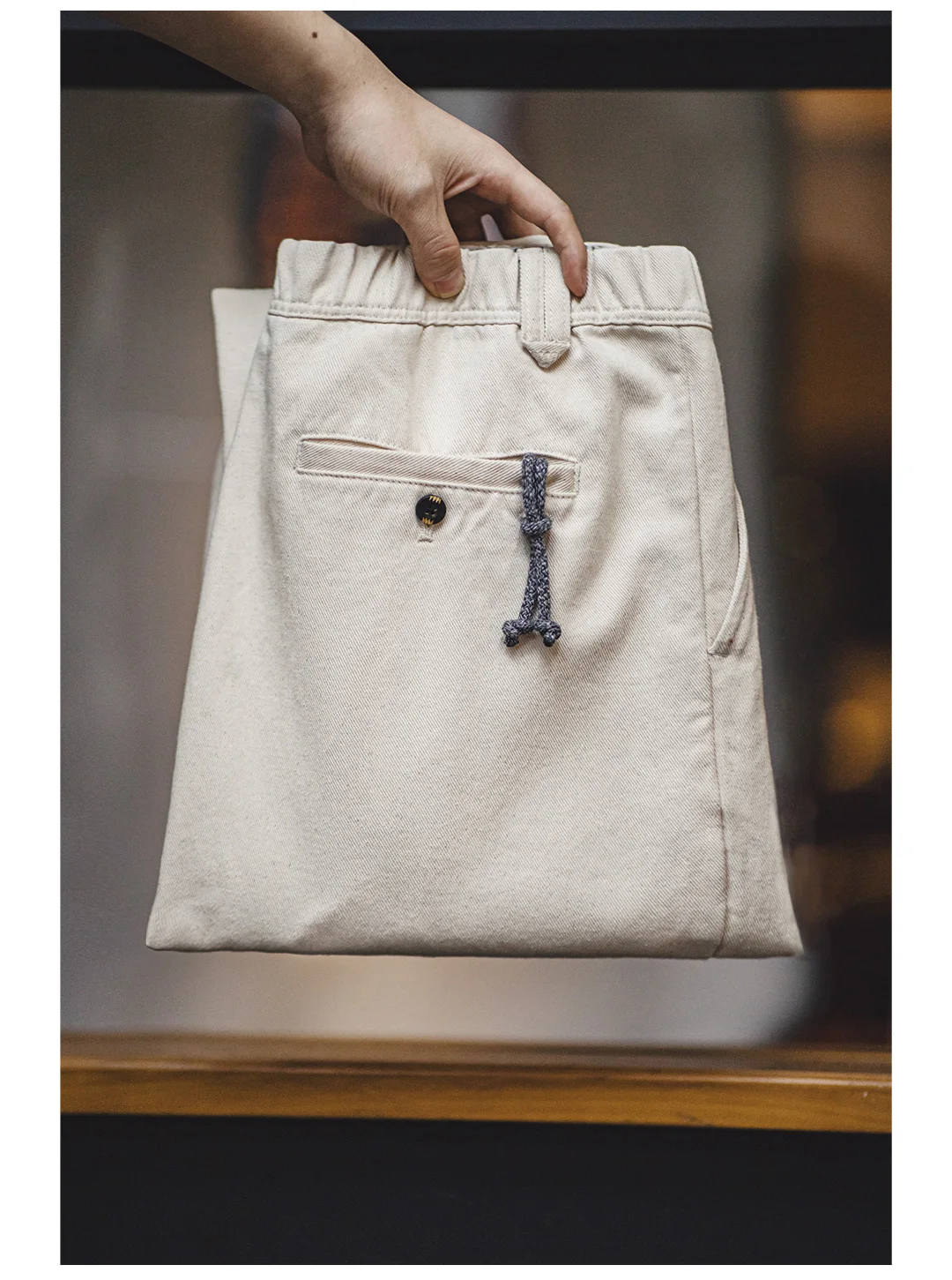 Maden Retro White 10.9OZ 100% Cotton Denim Jeans Cleanfit Loose Casual Elastic Waist Pants for Men's Spring And Autumn Trousers