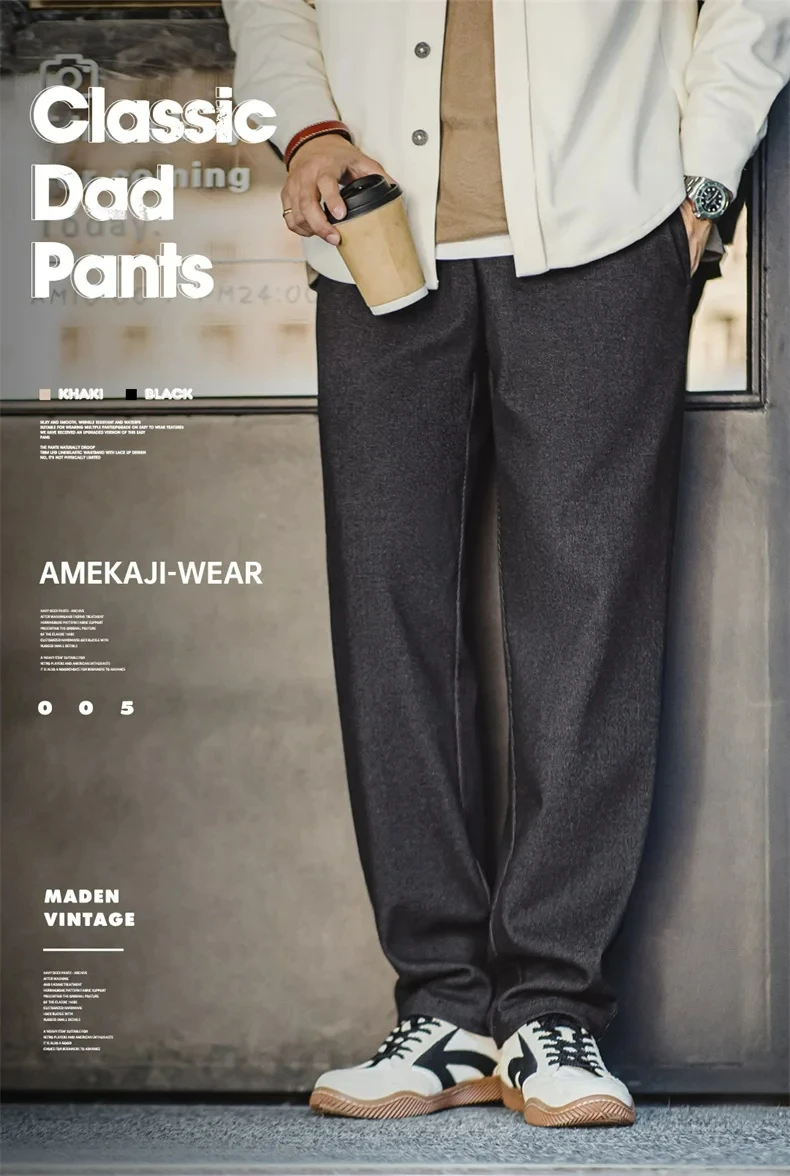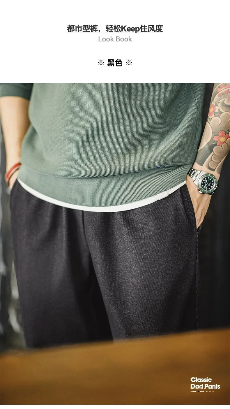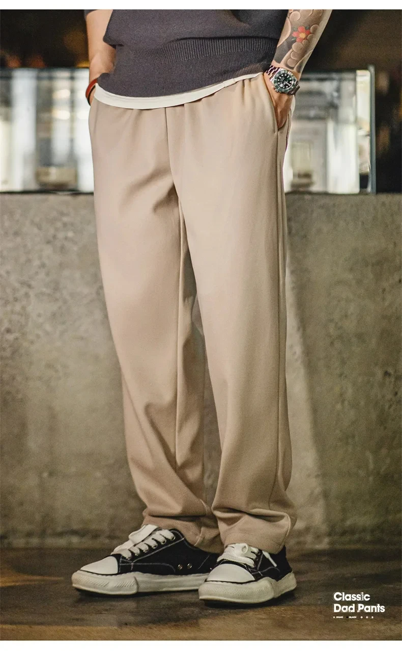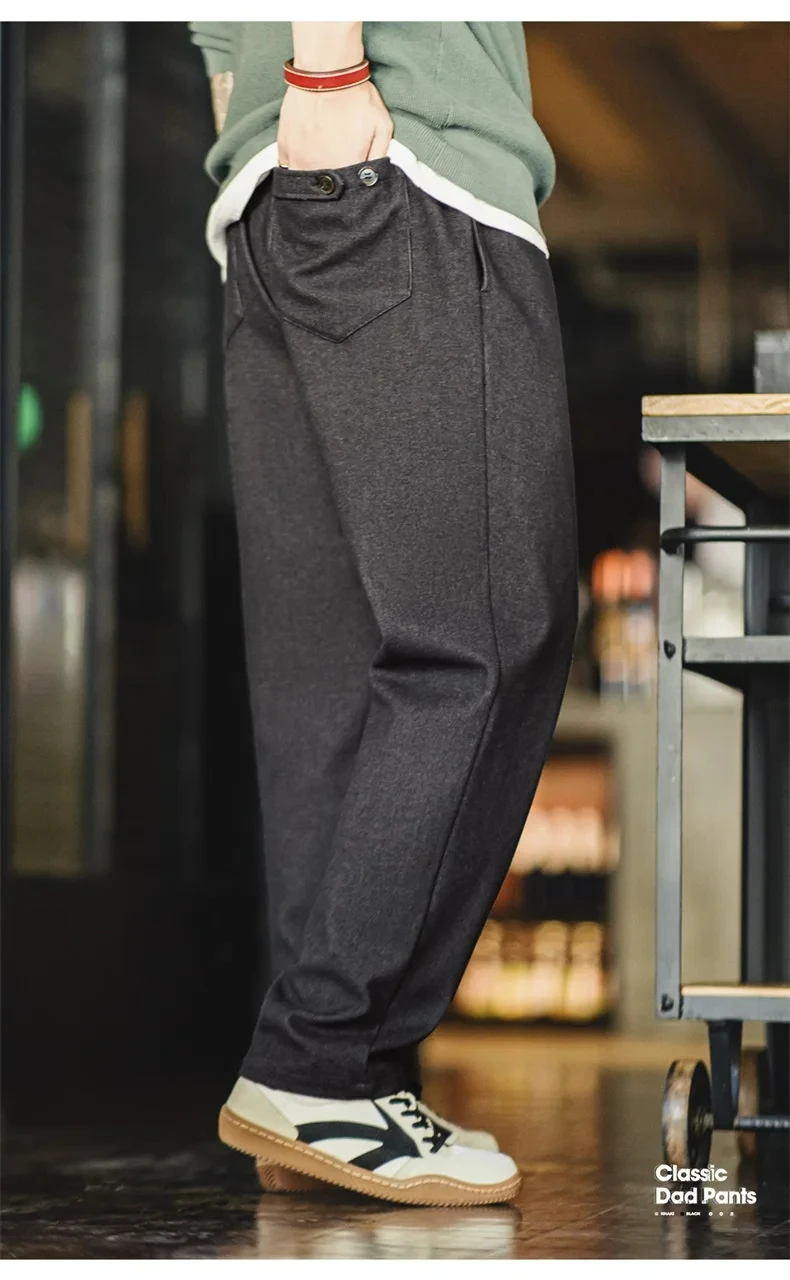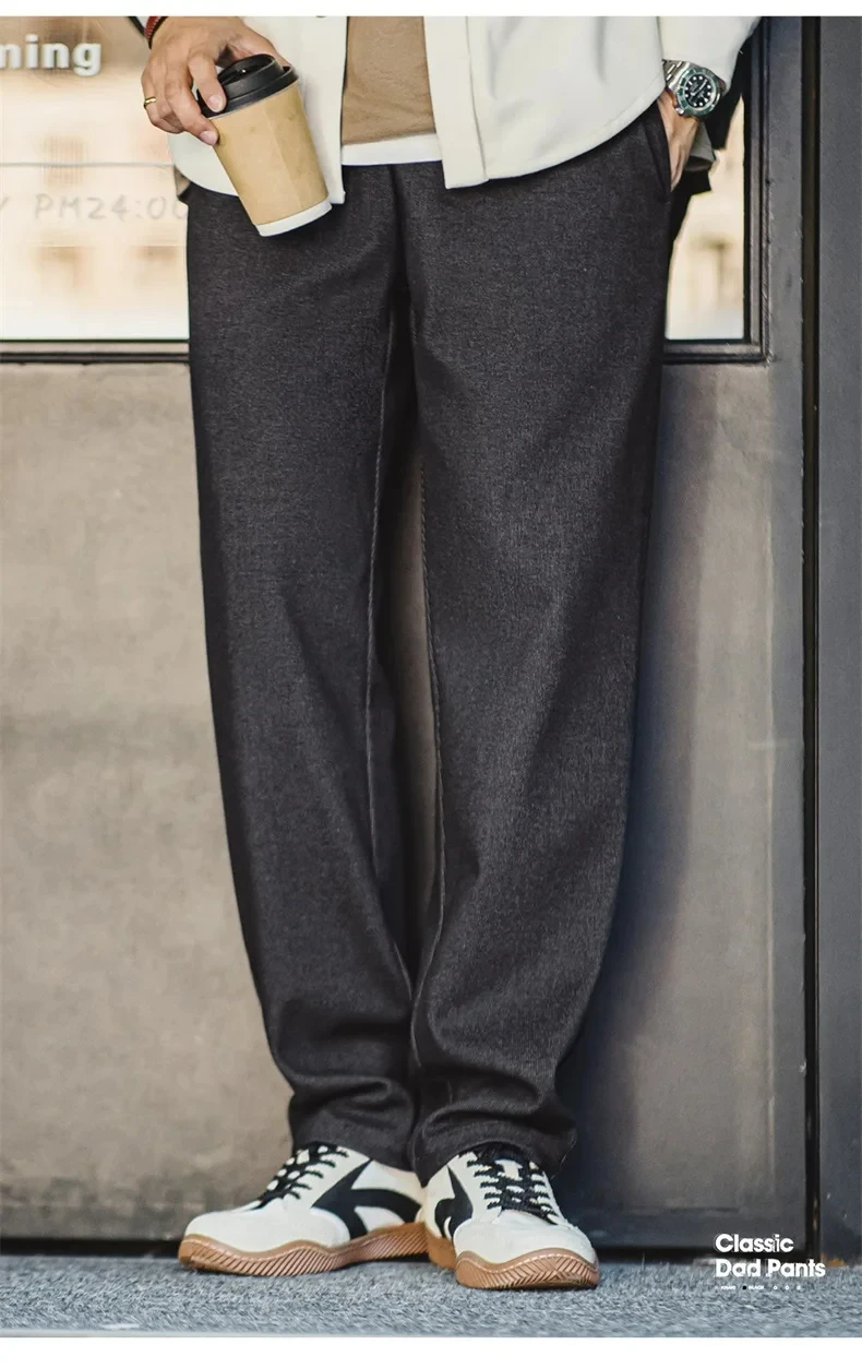 Maden Vintage 410g Heavyweight Dad Pants for Men Elastic Waist Blended Tweed Straight Casual Trousers Uncle Fu Classic Workwear