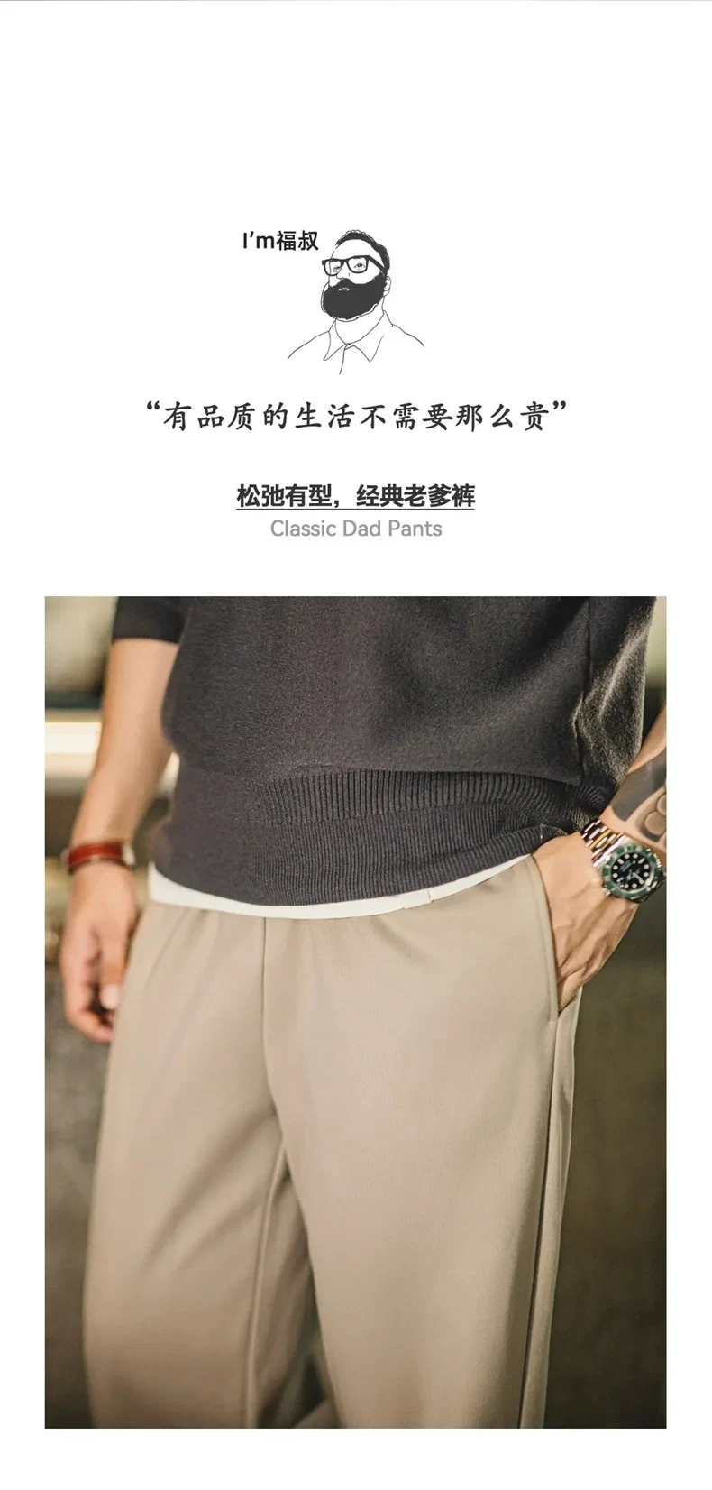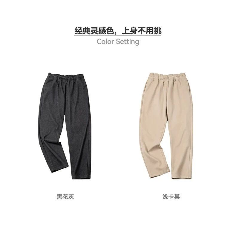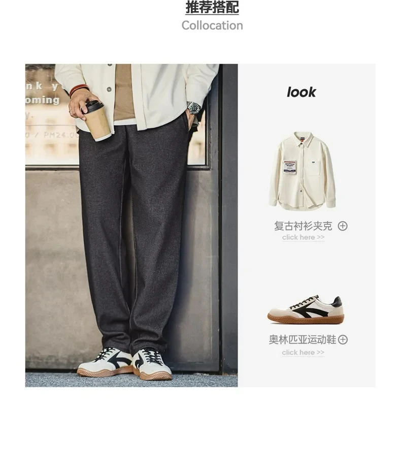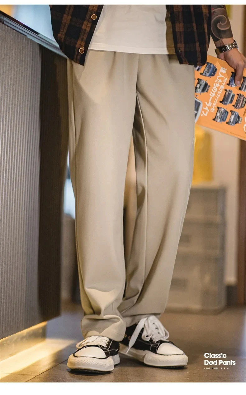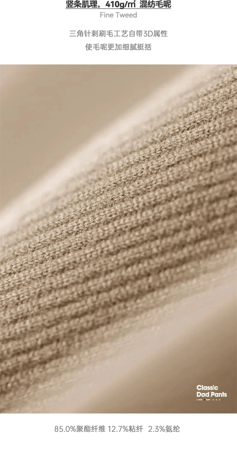 Maden Vintage 410g Heavyweight Dad Pants for Men Elastic Waist Blended Tweed Straight Casual Trousers Uncle Fu Classic Workwear