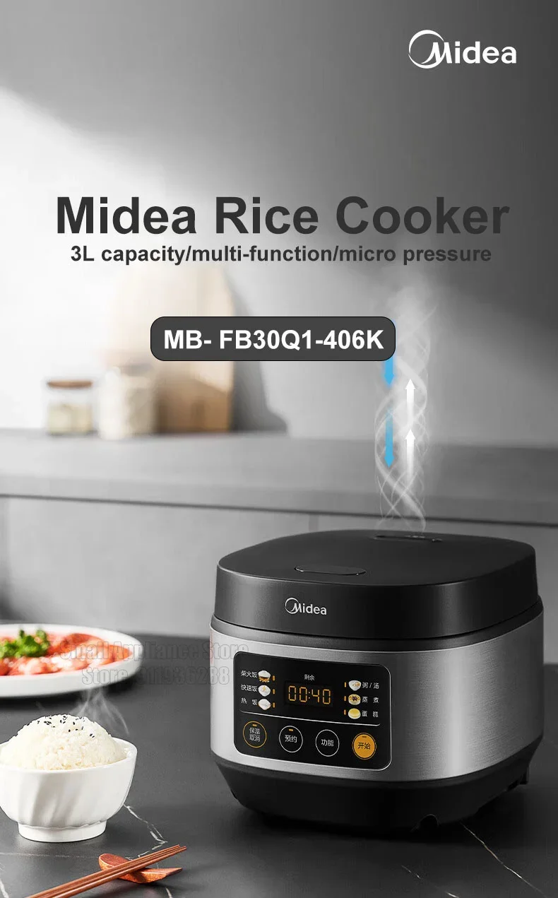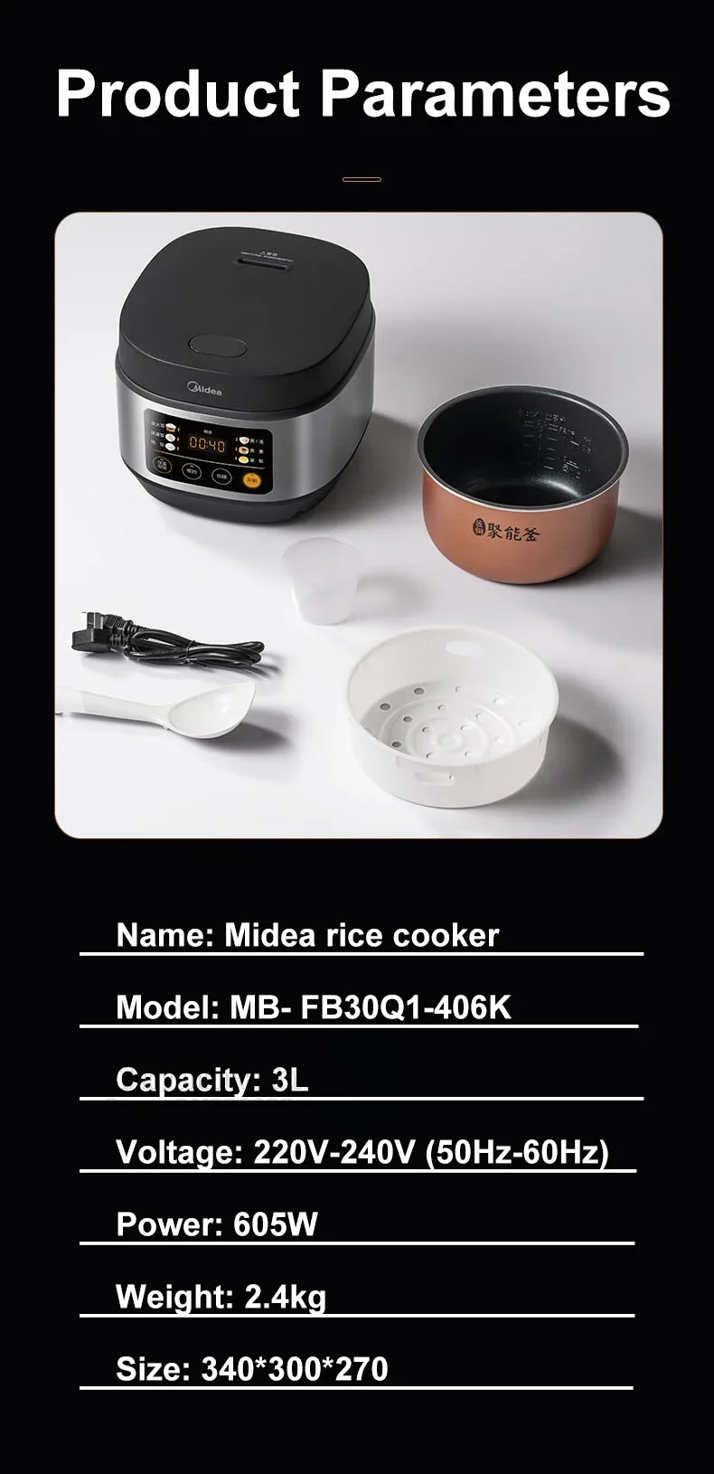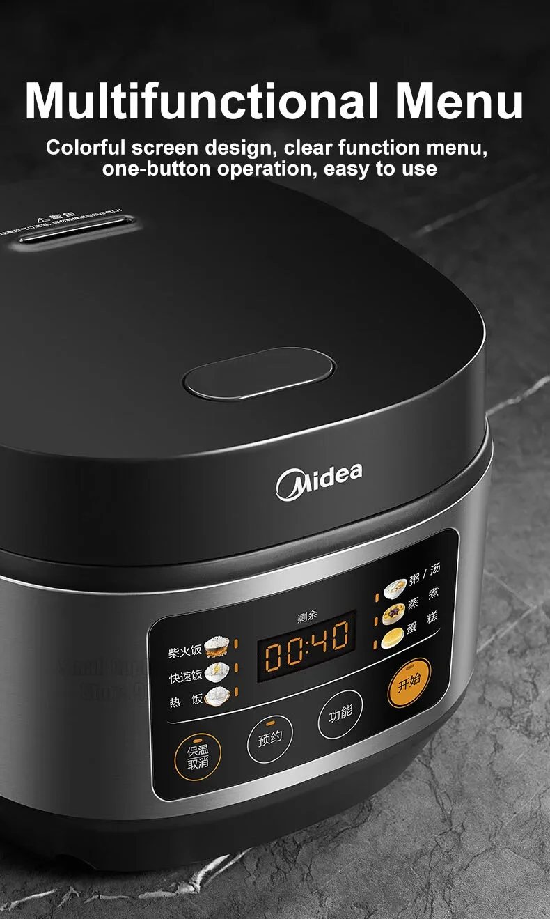 Name: Midea Rice Cooker 3L Capacity Electric Cooker Portable Multi-functional Kitchen Appliance Color Screen Button Electric Cooking Pot