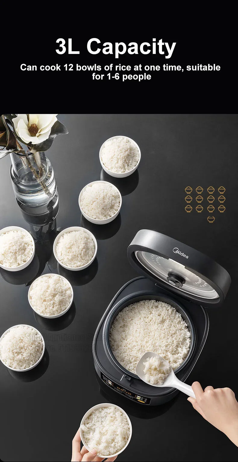●Midea rice cooker, 24H reservation, 3L large capacity, can cook 12 bowls of rice at a time, suitable for 1-6 people;