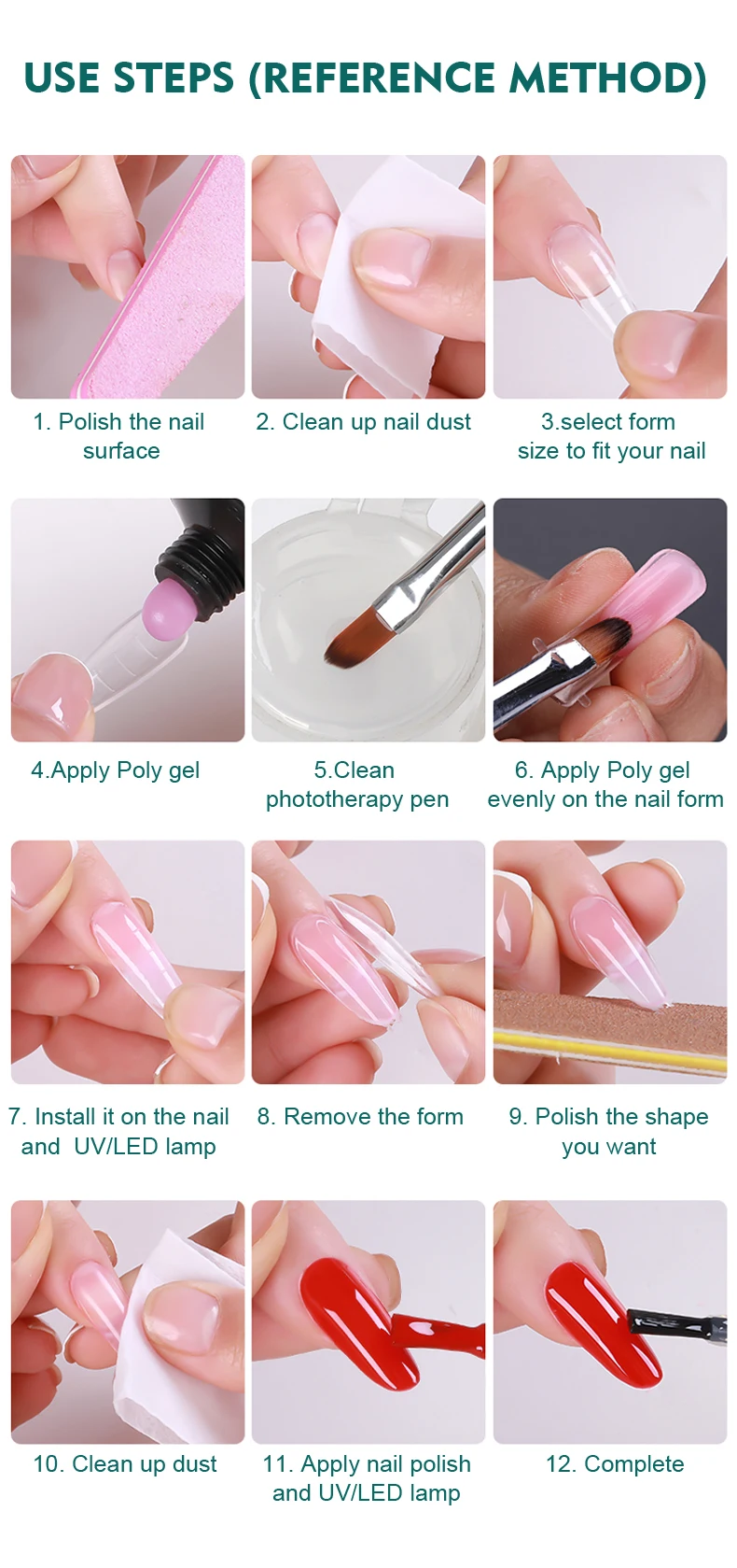 Package Contents:120 Pcs/box Extension Nail Model Without Paper Support