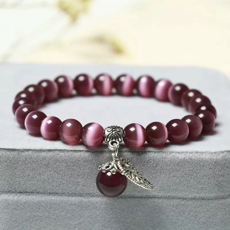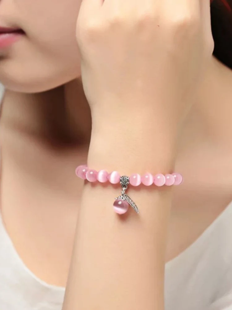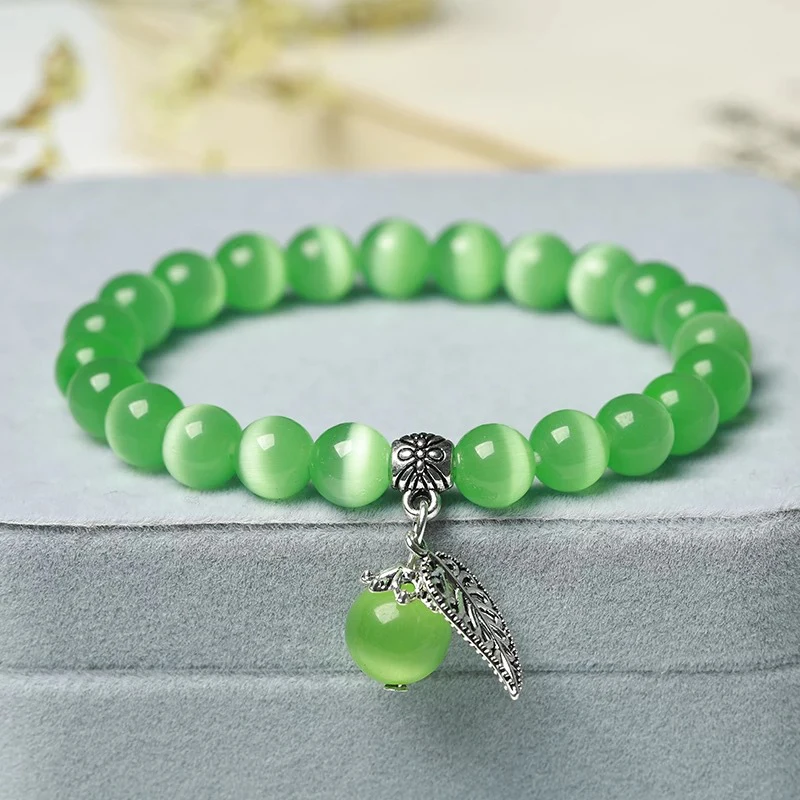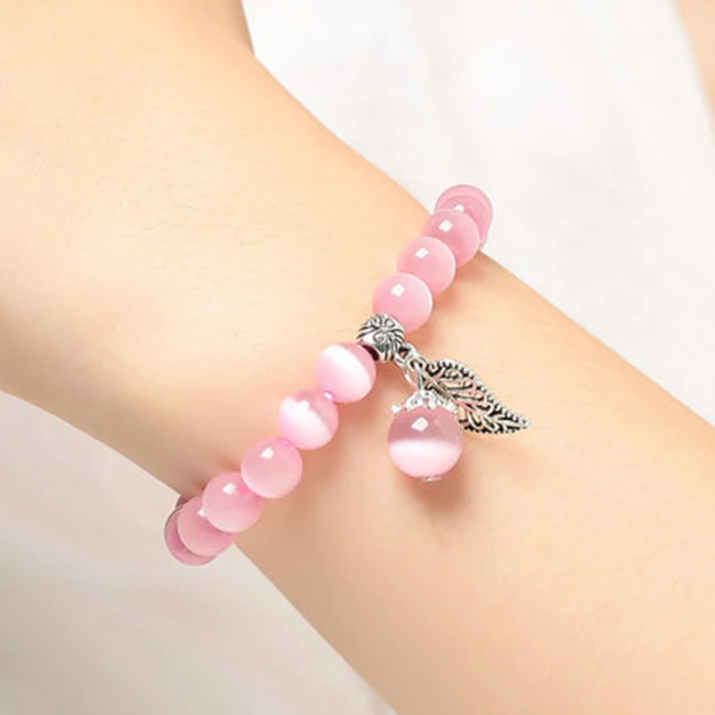 Natural Cat Eye Stone Bracelet Charm Women Opal Beaded Bracelets Multicolor Stretch Bangles Men Yoga Wrist Jewelry Friends Gifts