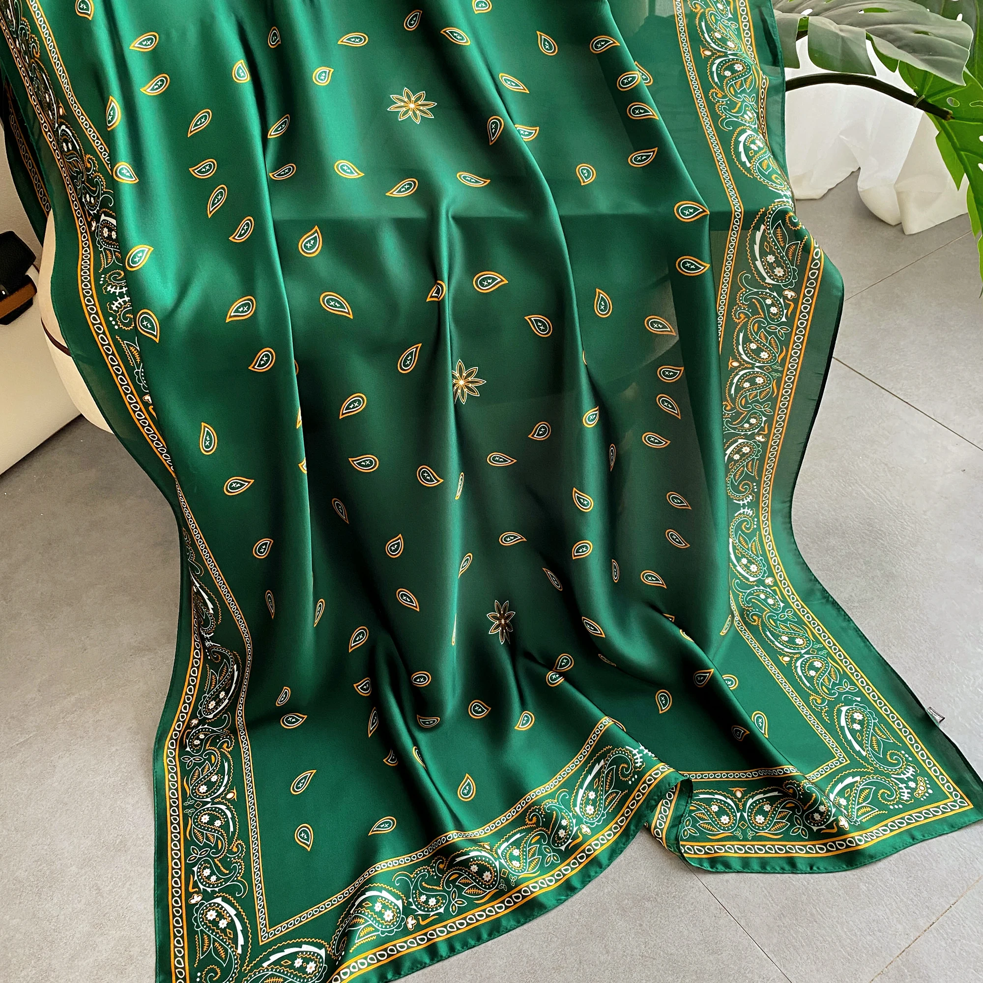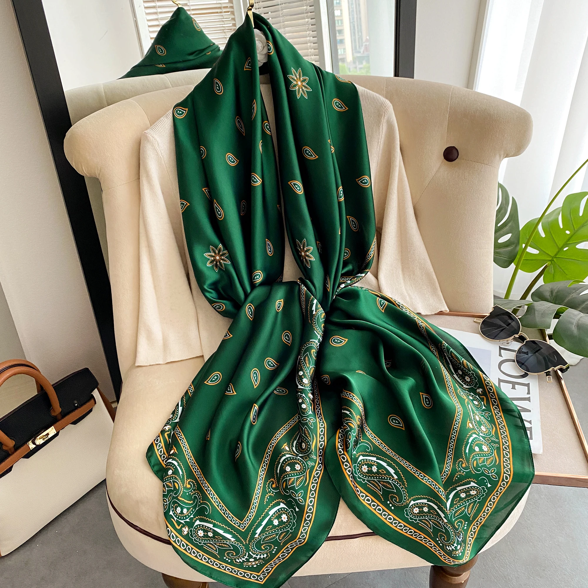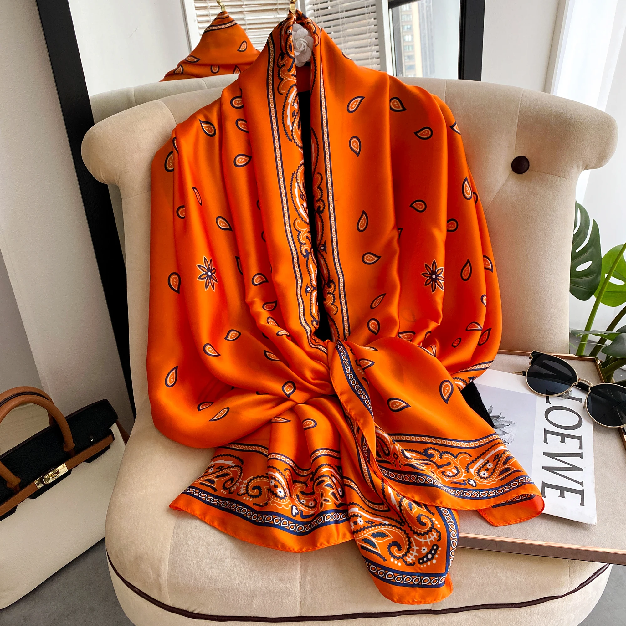 New 180*90cm fashion Silk Scarf Scarftop Headwraps Women Vintage Four Seasons Hair Scarve Hijab Foulard Bandana Femme Headscarf