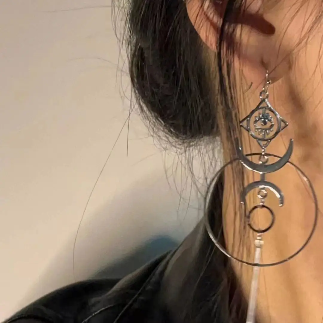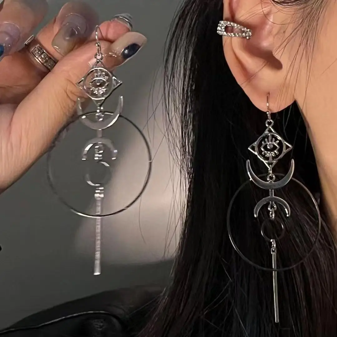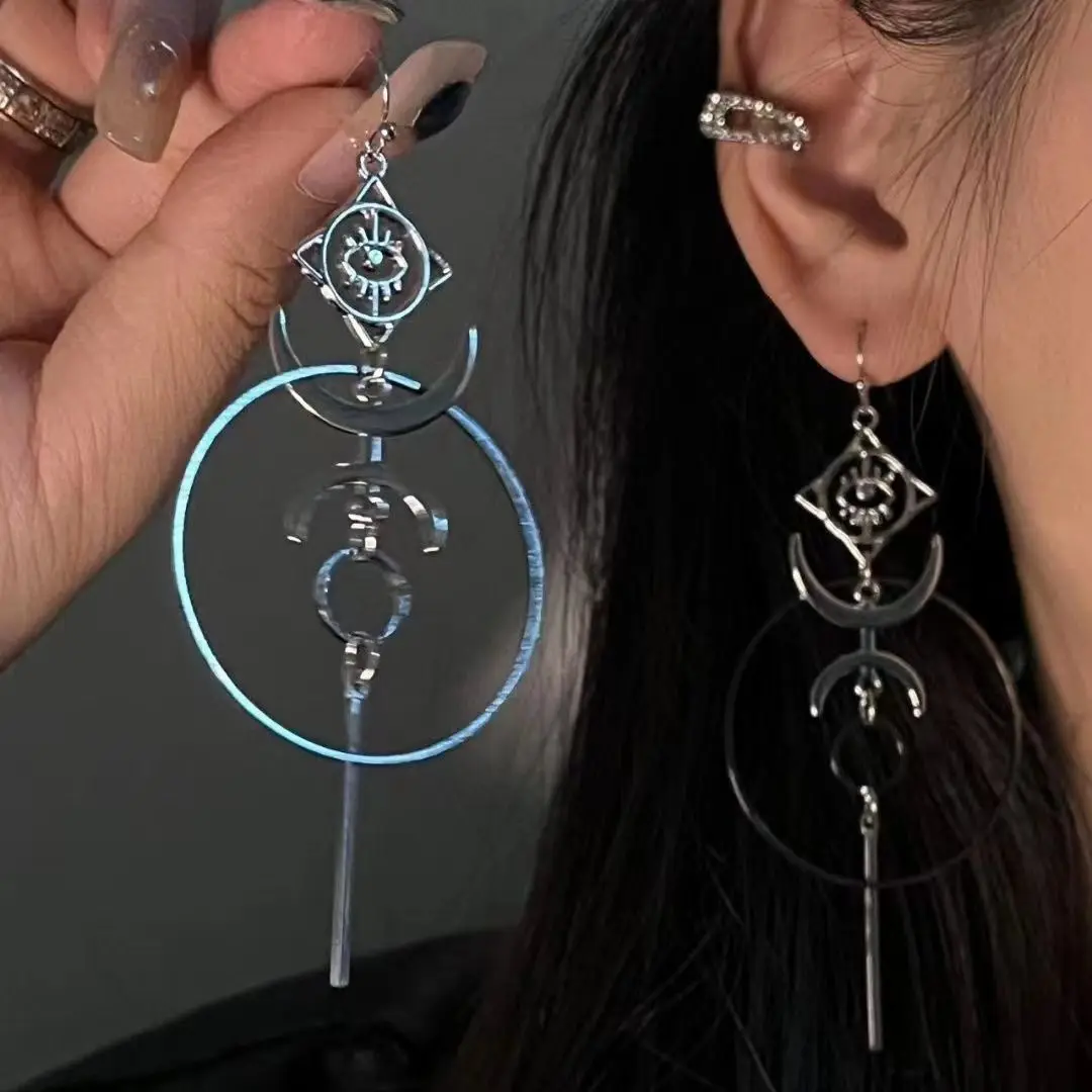 New Exaggerated Moon Crescent Devil Eye Large Circle Long Earrings For Women Vintage Jewelry Accessories