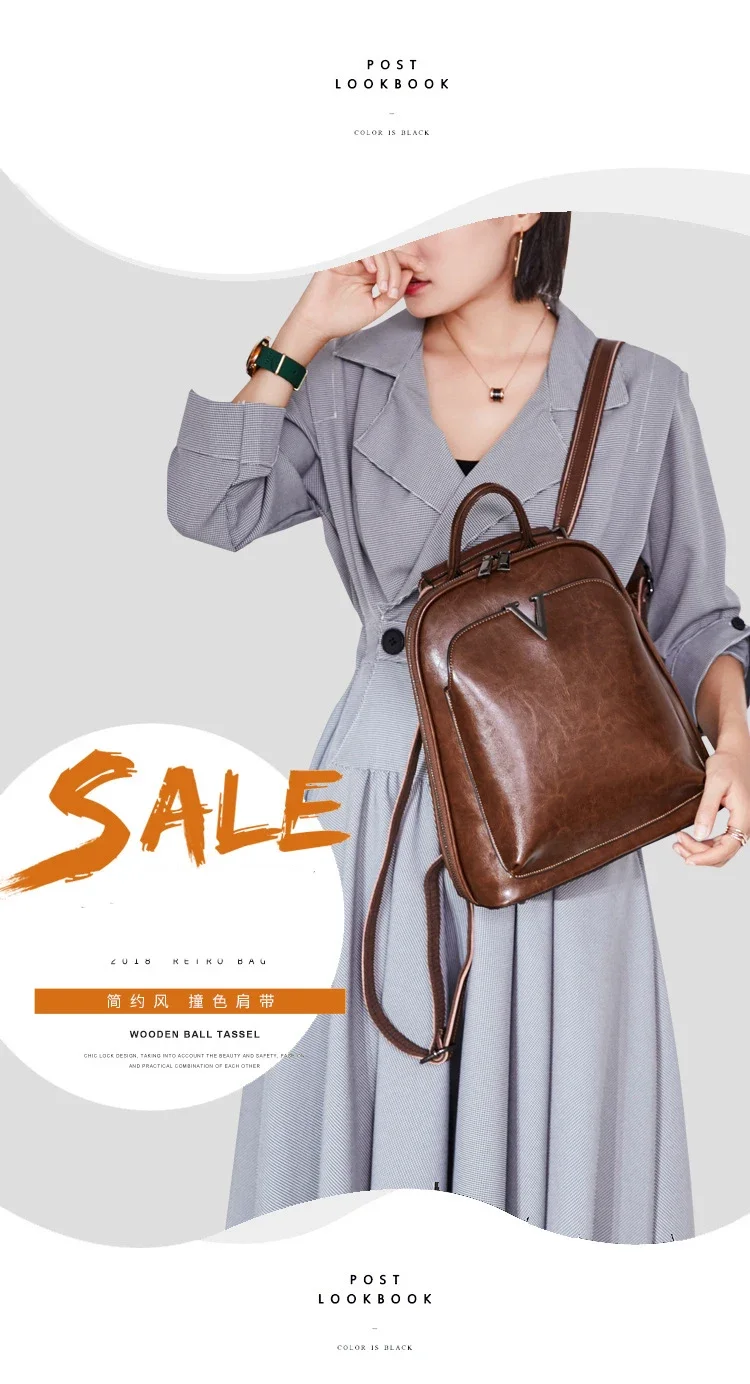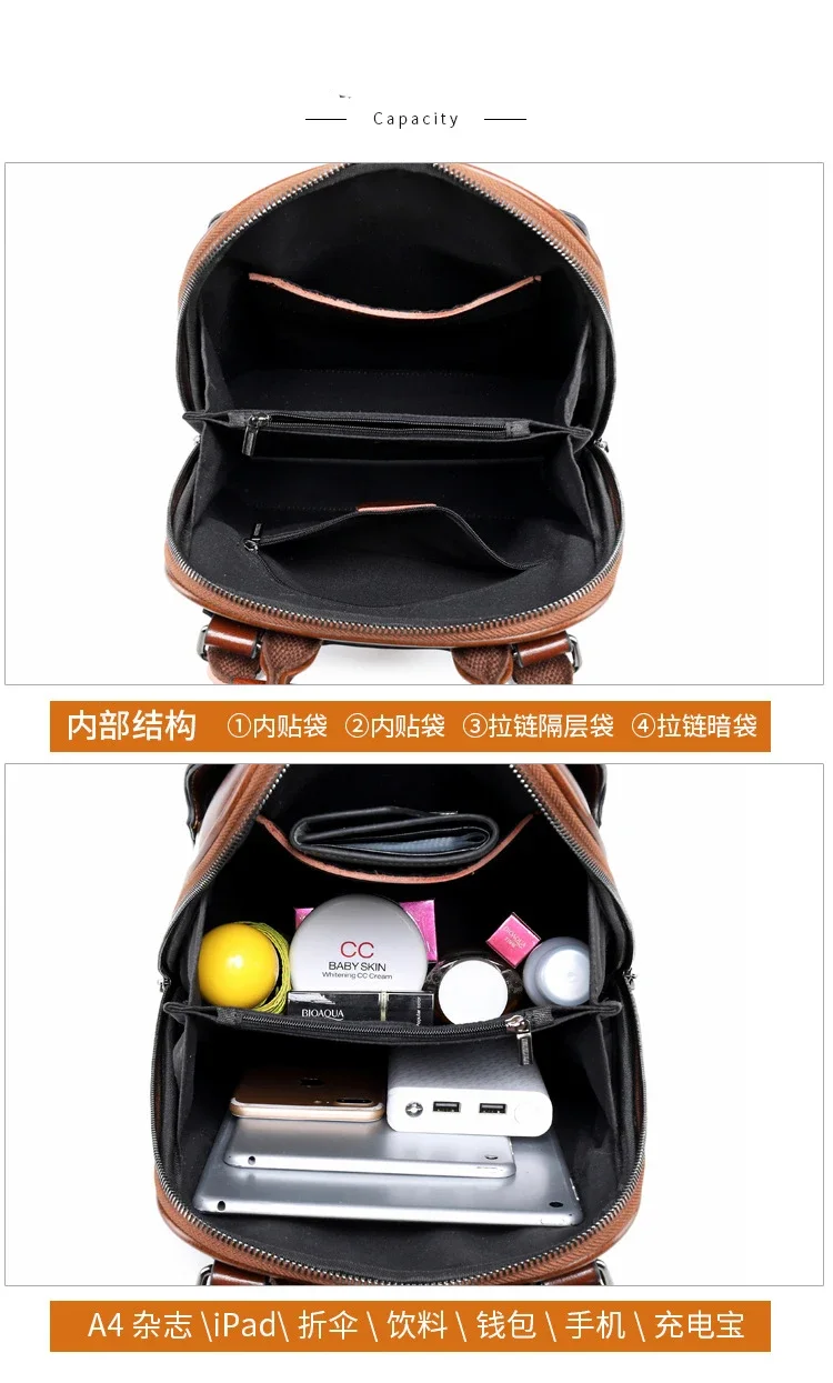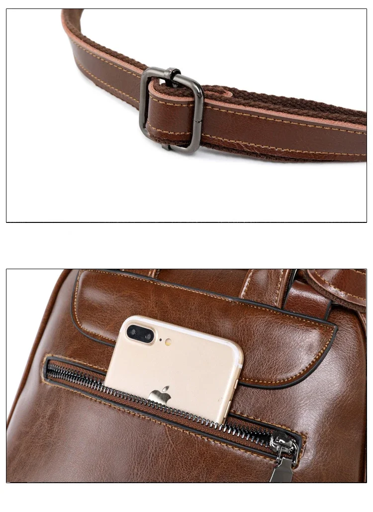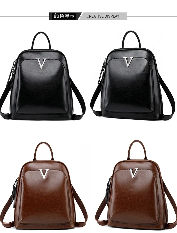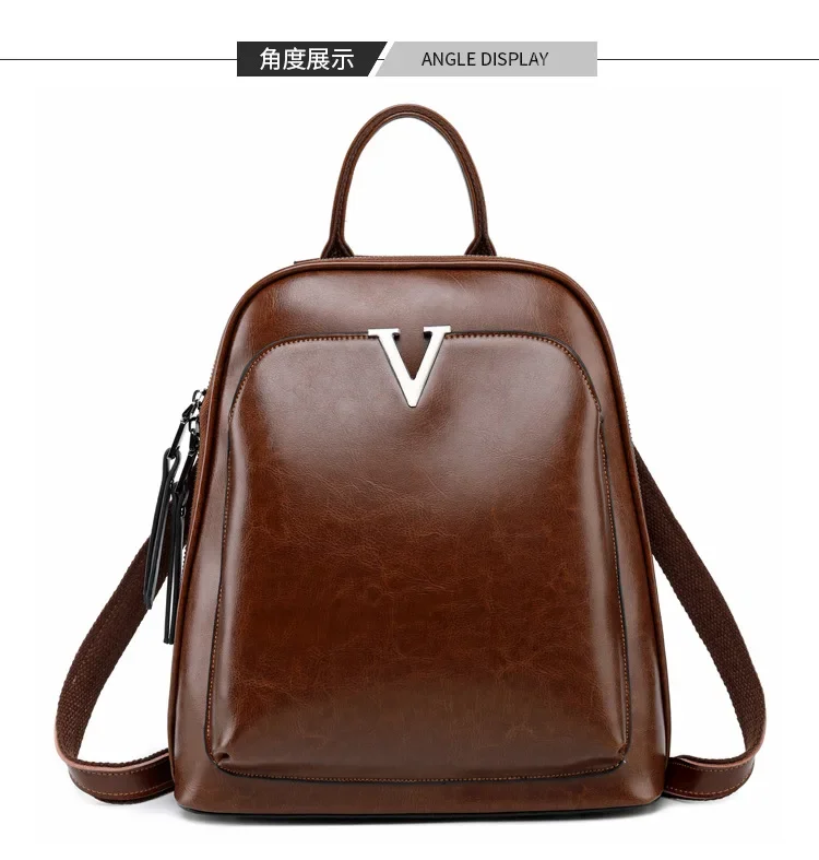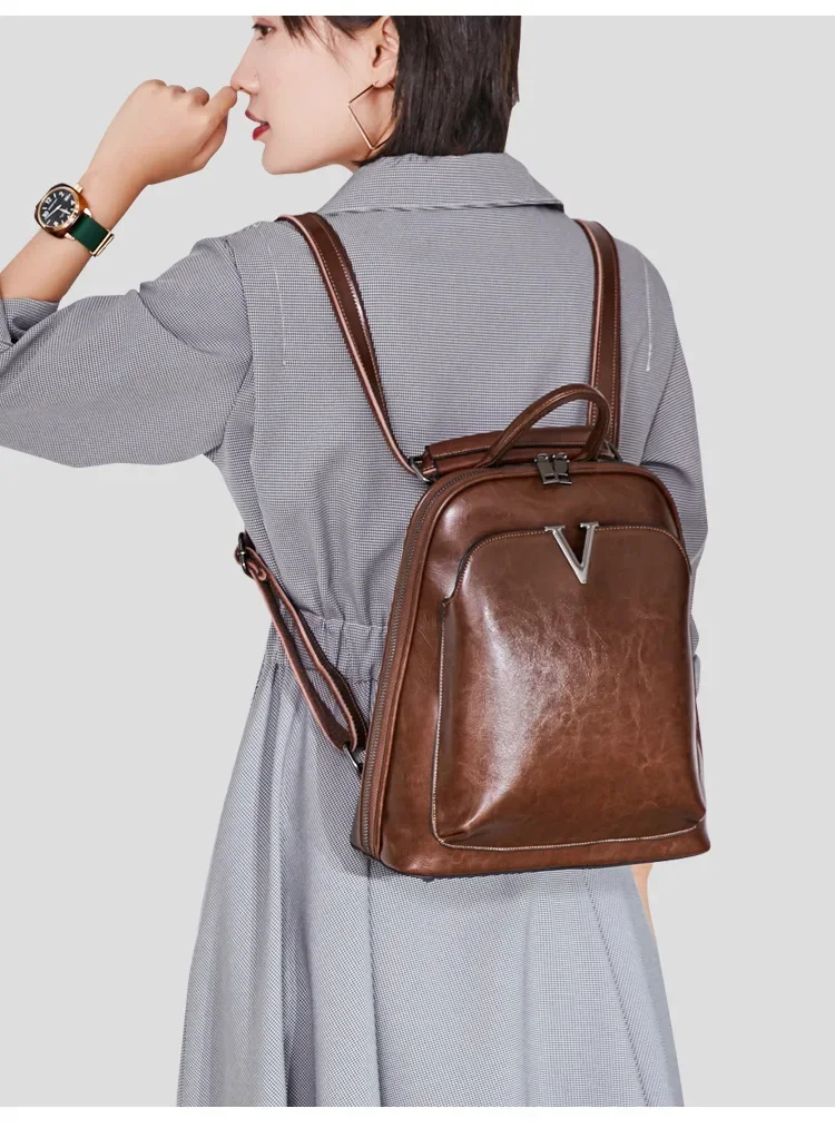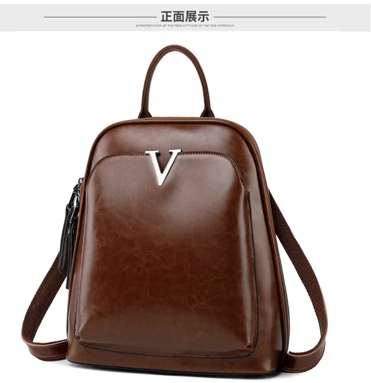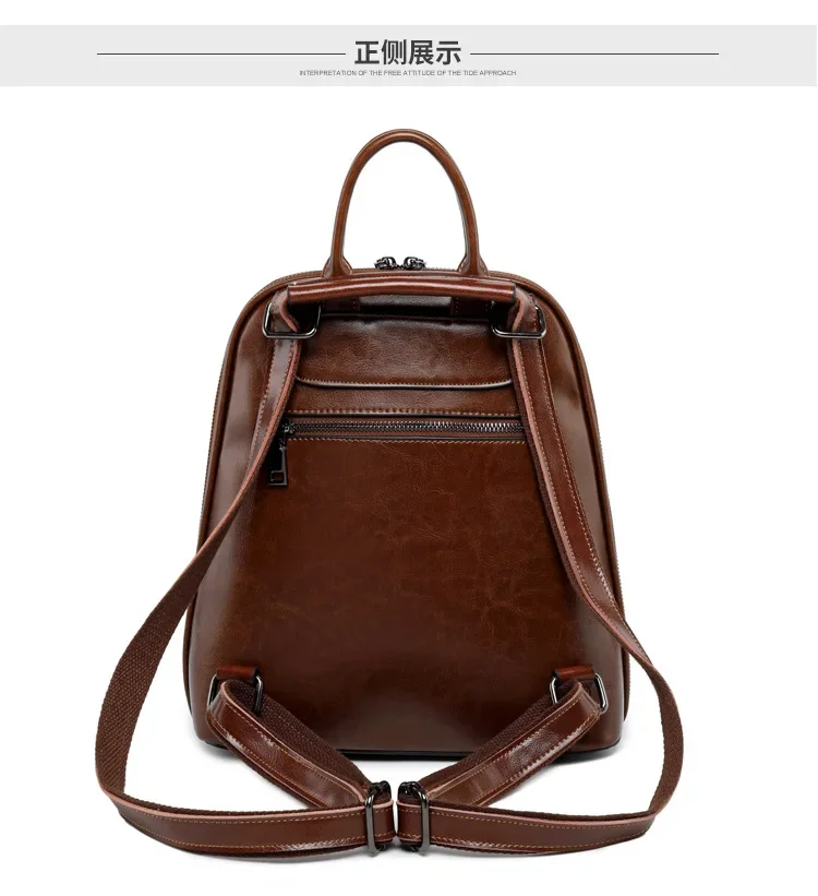 New Oil Wax Cowhide Women Rucksack Single Shoulder Bags Simple Fashion Knapsack Grils School Daypack Genuine Leather Backpack