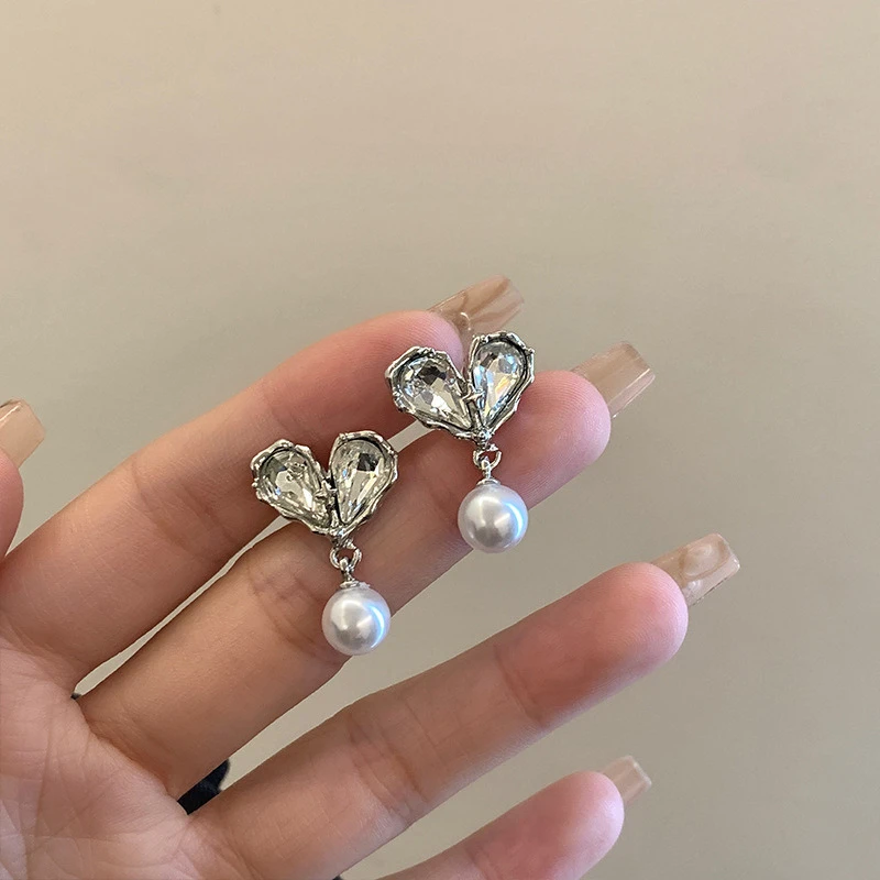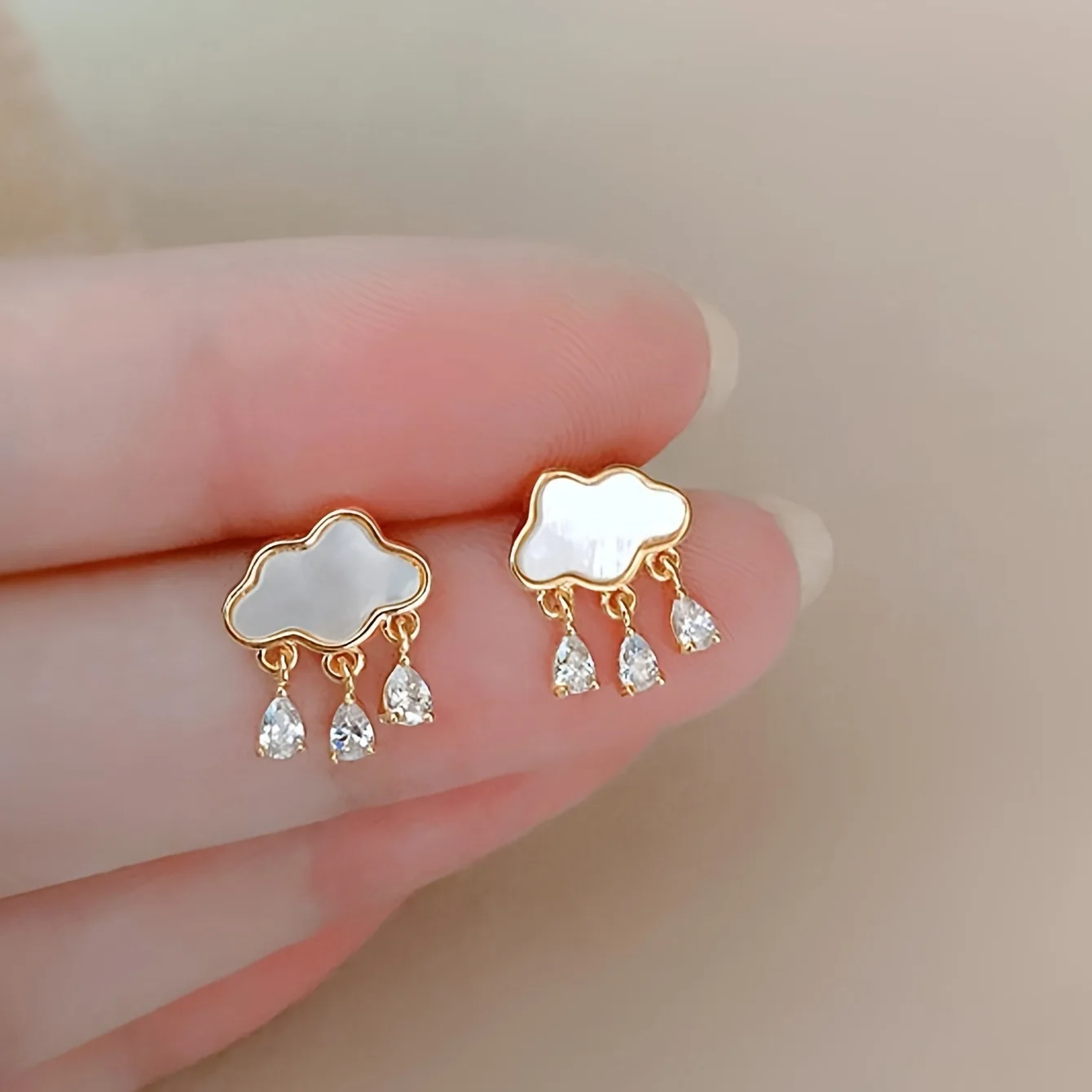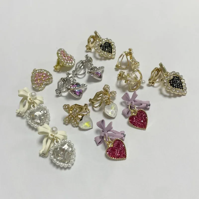 Non Pierced Mini Zircon Heart Clip on Earrings Fashion Temperament Small Heart Pearls Cloud Ears Clips for Women Evening Party