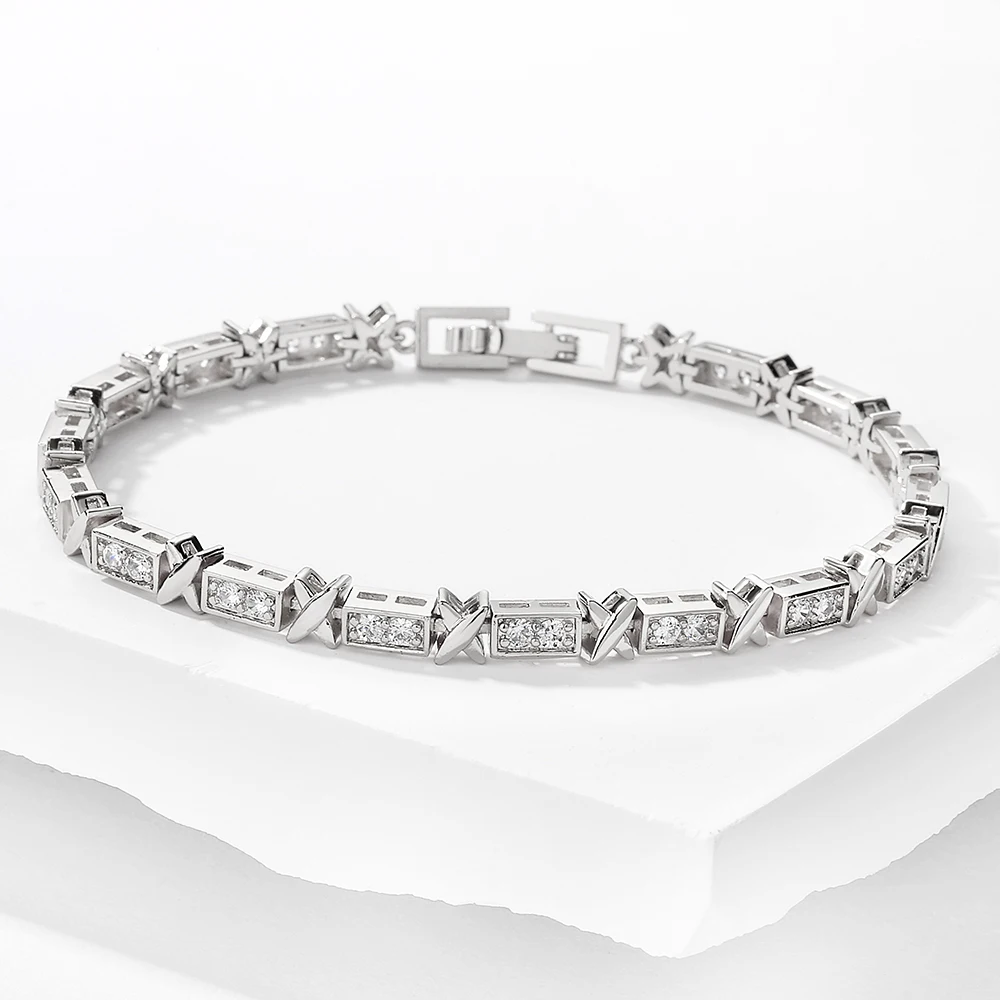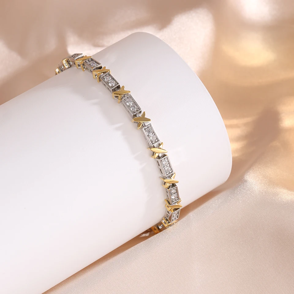 RAKOL 18K-Gold-plated X-shaped Full Zircon Bracelet For Women High Quality Cross Niche Design Luxury Wedding Party Jewelry