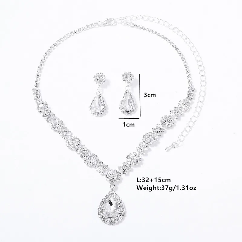 Rhinestone Flower Necklace Set for Women Choker Necklace and Earrings Party Birthday Wedding Dress Bridal Jewelry Sets Fashion