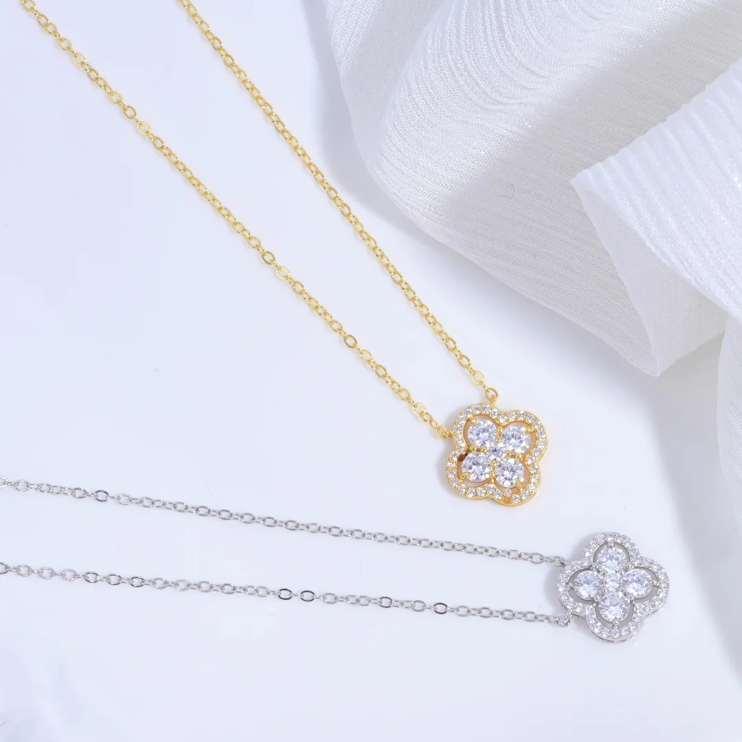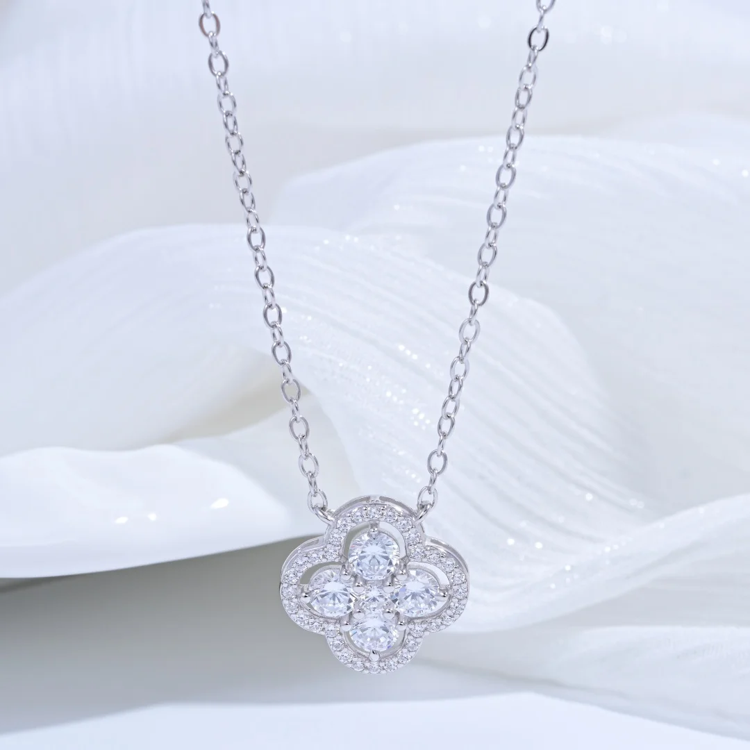 S925 Sterling Silver Four-leaf Clover Necklace for Women, Inlaid With Cubic Zirconia, A Light Luxury Clavicle Chain SL42