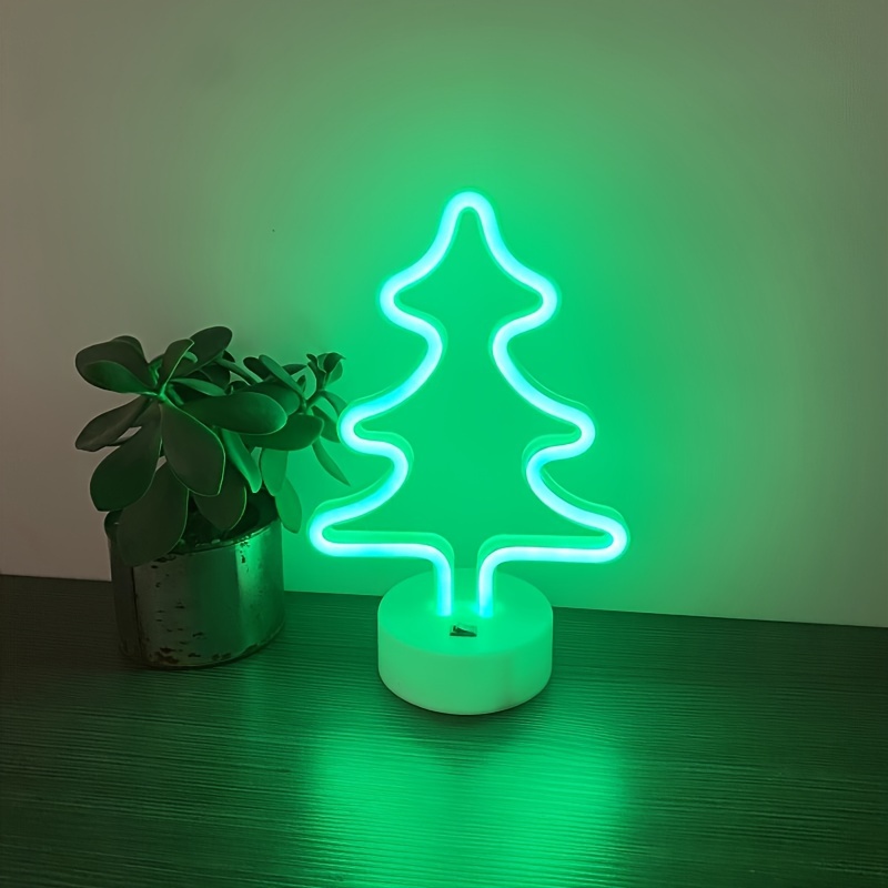 Shenzhi Tech LED Neon Christmas Tree Lamp, USB/Battery Dual Power, Non-Waterproof Push Button Wall/Tabletop Decorative Night Light for Home, Living Room, Bar, Party - PVC Lampshade, LED Lighting