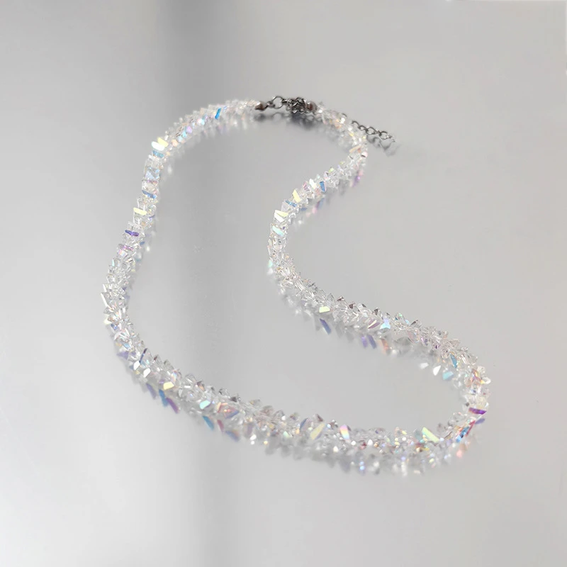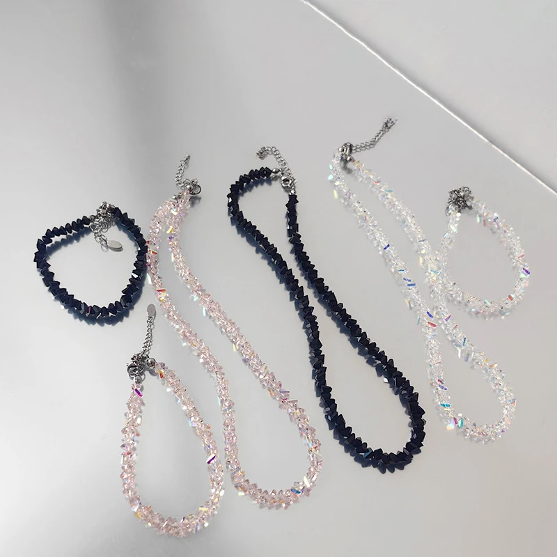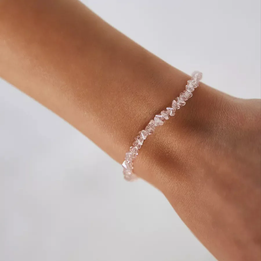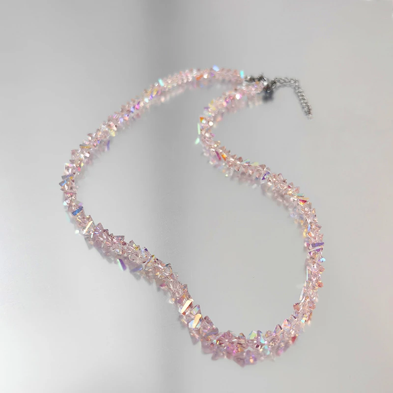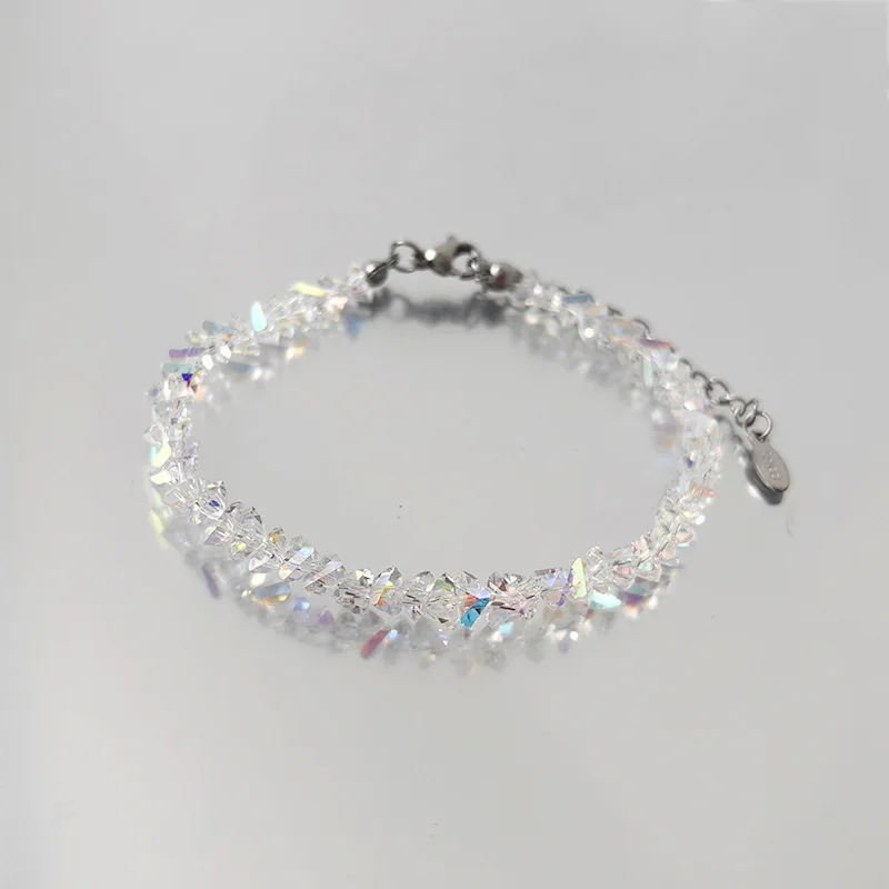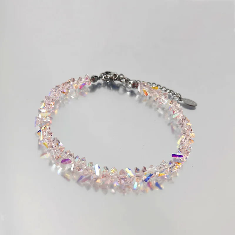 Shiny Transparent Crystal Irregular Beaded Bracelet for Women Korean Mulit-cut Pink Glass Chain on the Hand Jewelry Girls Gifts