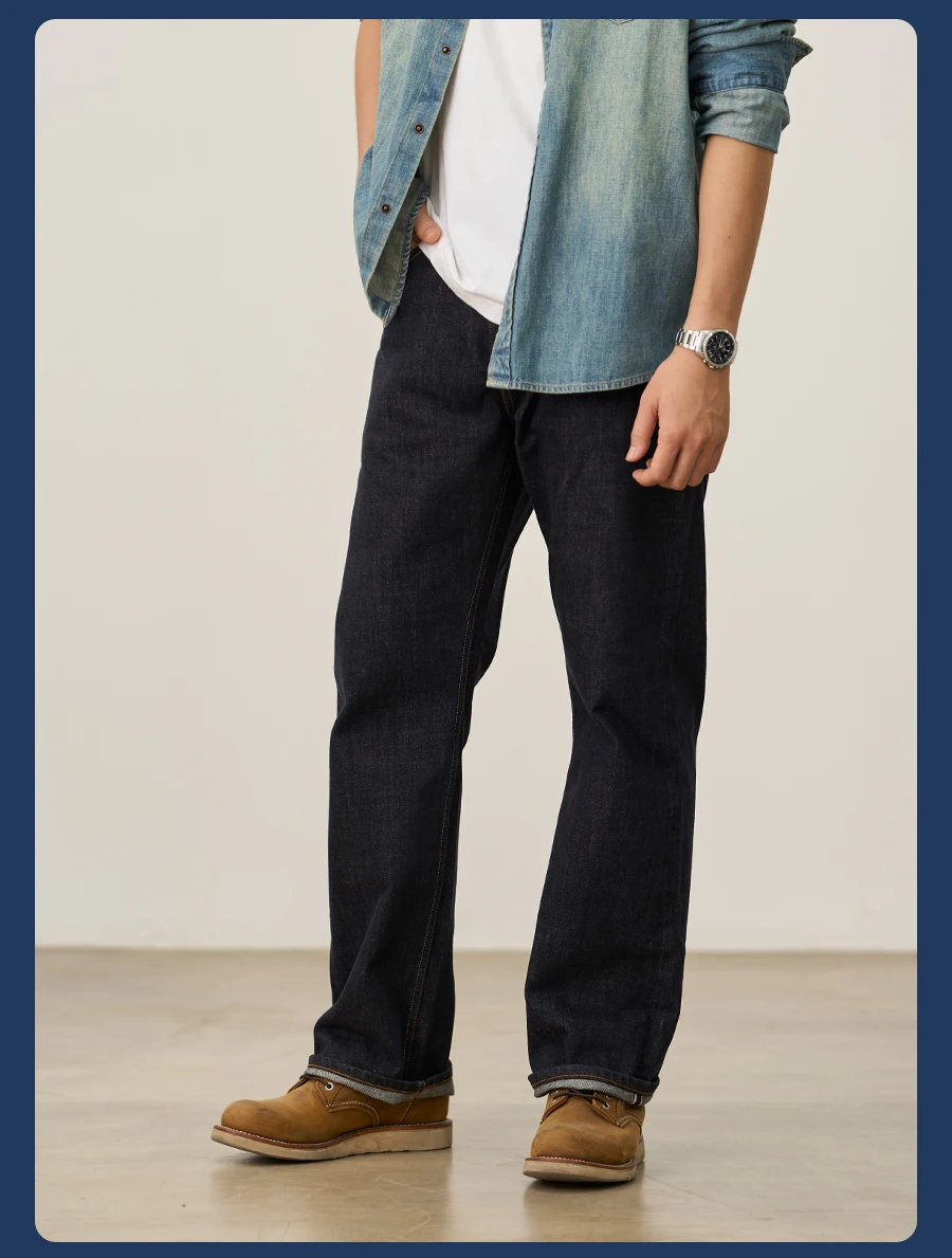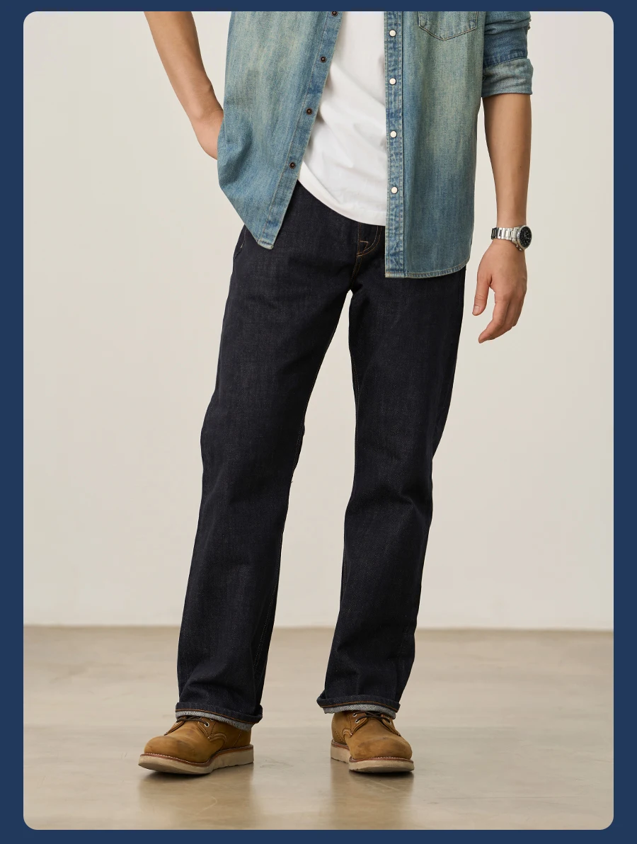 SIMWOOD High Standard 2025 Autumn New Loose Tapered 14.3oz 100% Cotton Selvedge Denim Pants Men High Quality Plus Size Jeans