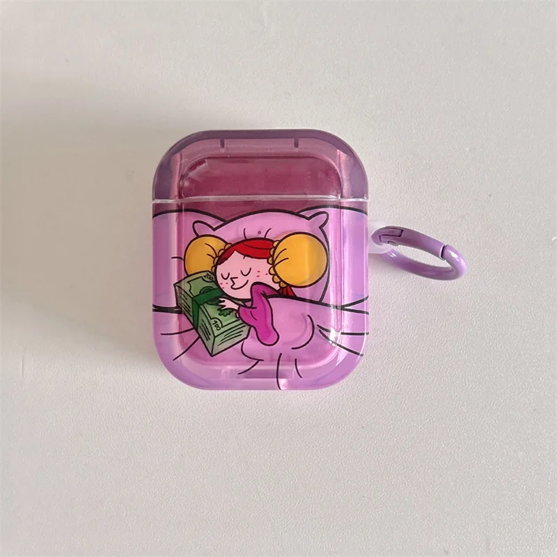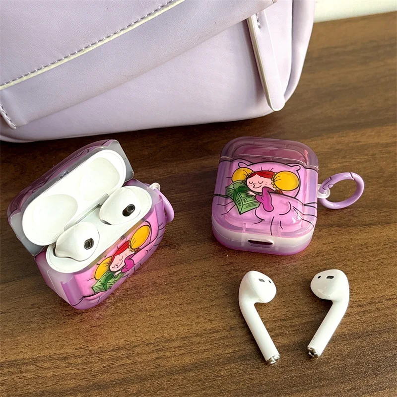 Sleeping Girl Case for AirPods 4 Airpod 1 2 3 Pro Pro2 Bluetooth Earbuds Charging Box Protective Earphone Case Cover