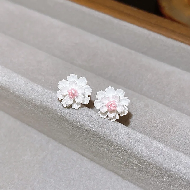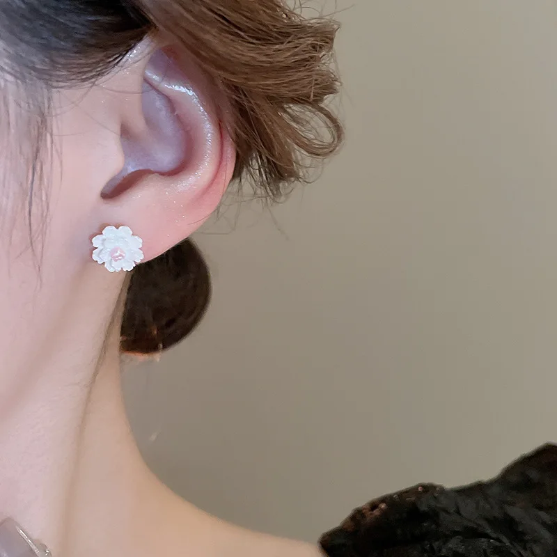 Small Fresh Resin Flower Earrings for Women Simple Fashion Cute Camellia Stud Earrings Mini White Pink Blue Jewelry