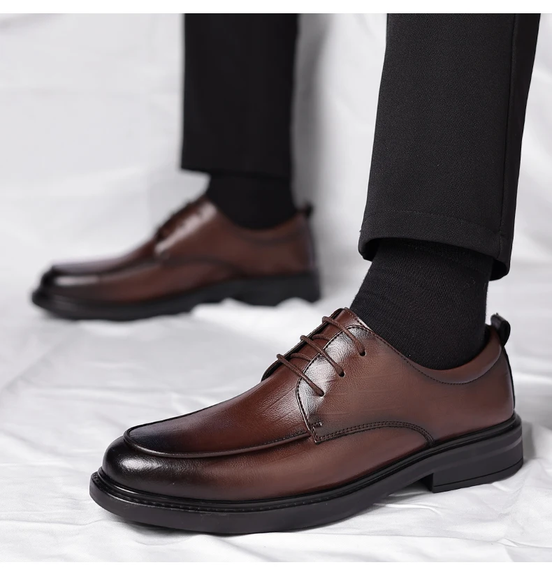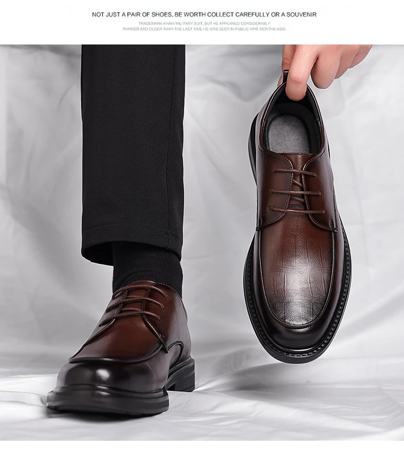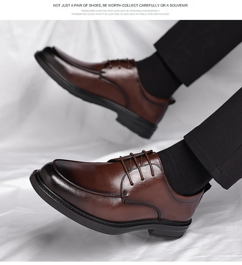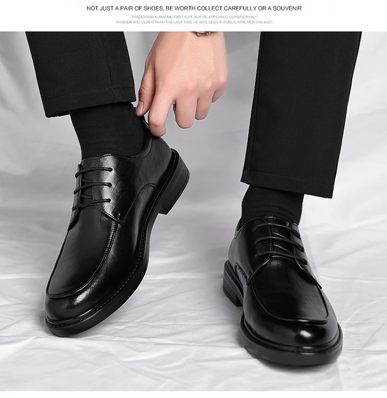 Spring/Summer Men 37-45 Men's Flat/6CM Heightening Elevator Shoes Business Formal Leather Shoes Man British Casual Wedding Suit