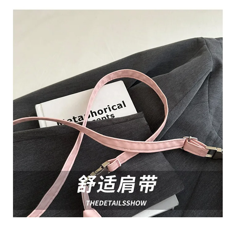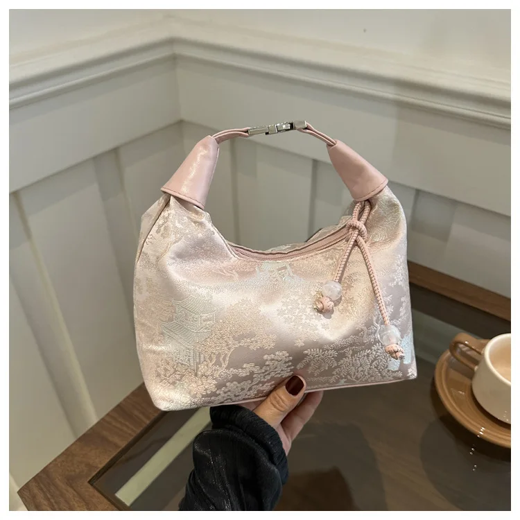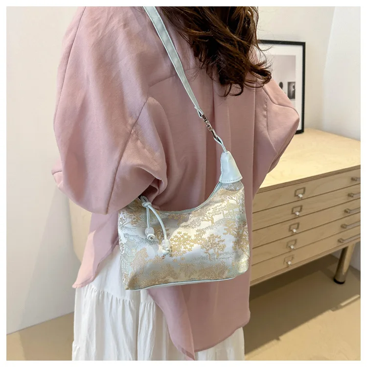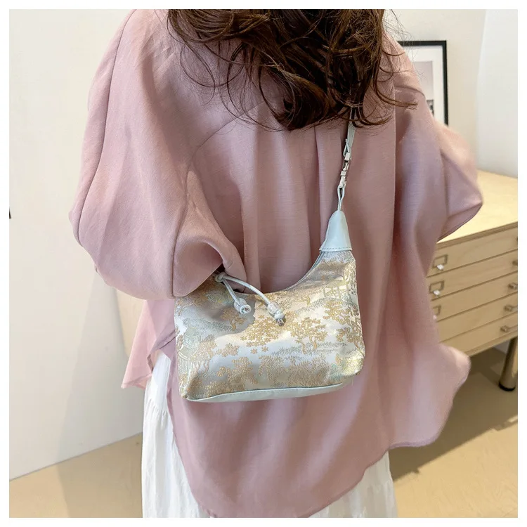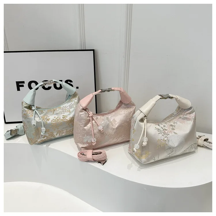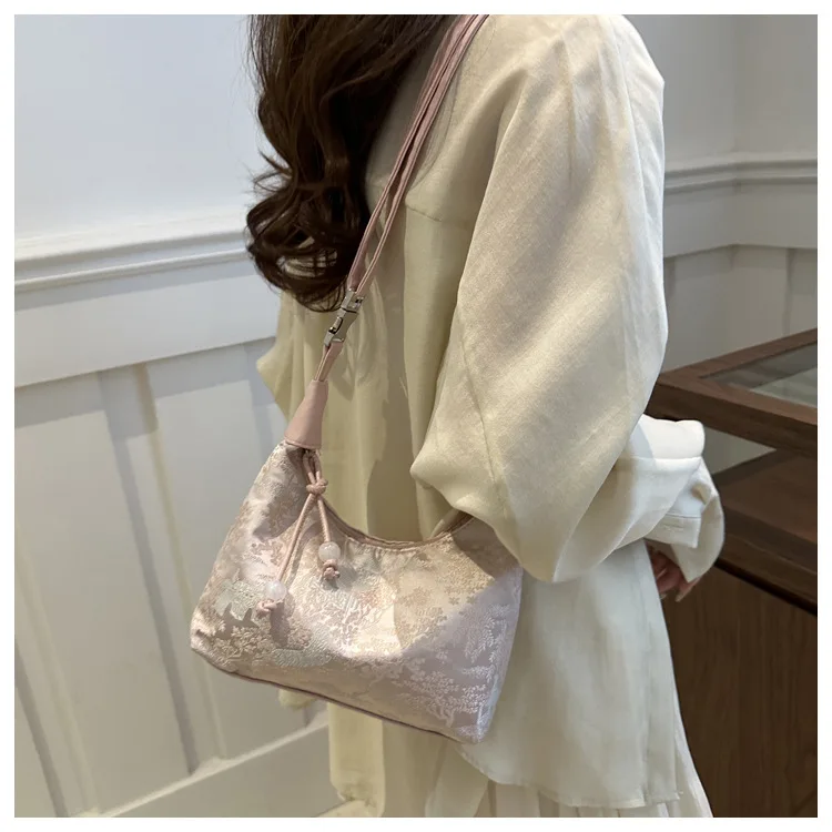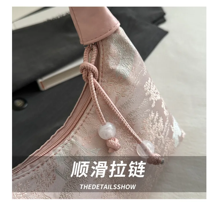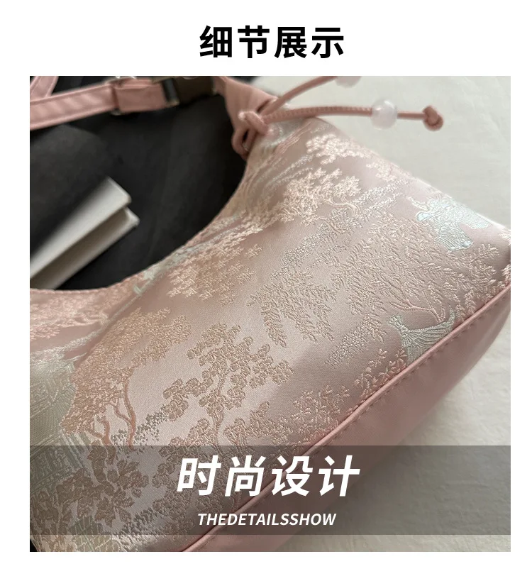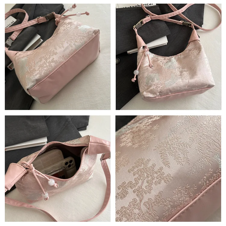 Sweet Embroidery Shoulder Bag Nylon Texture Pearl Pendant Crossbody Bag Small Bucket Handbag Women Girl
