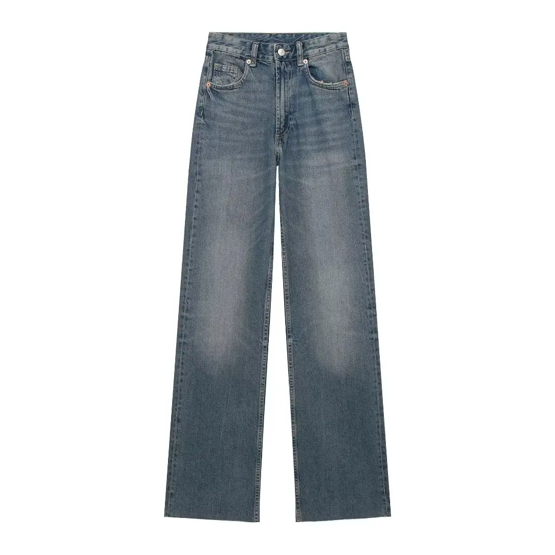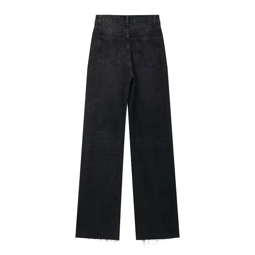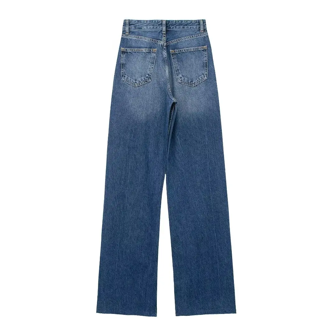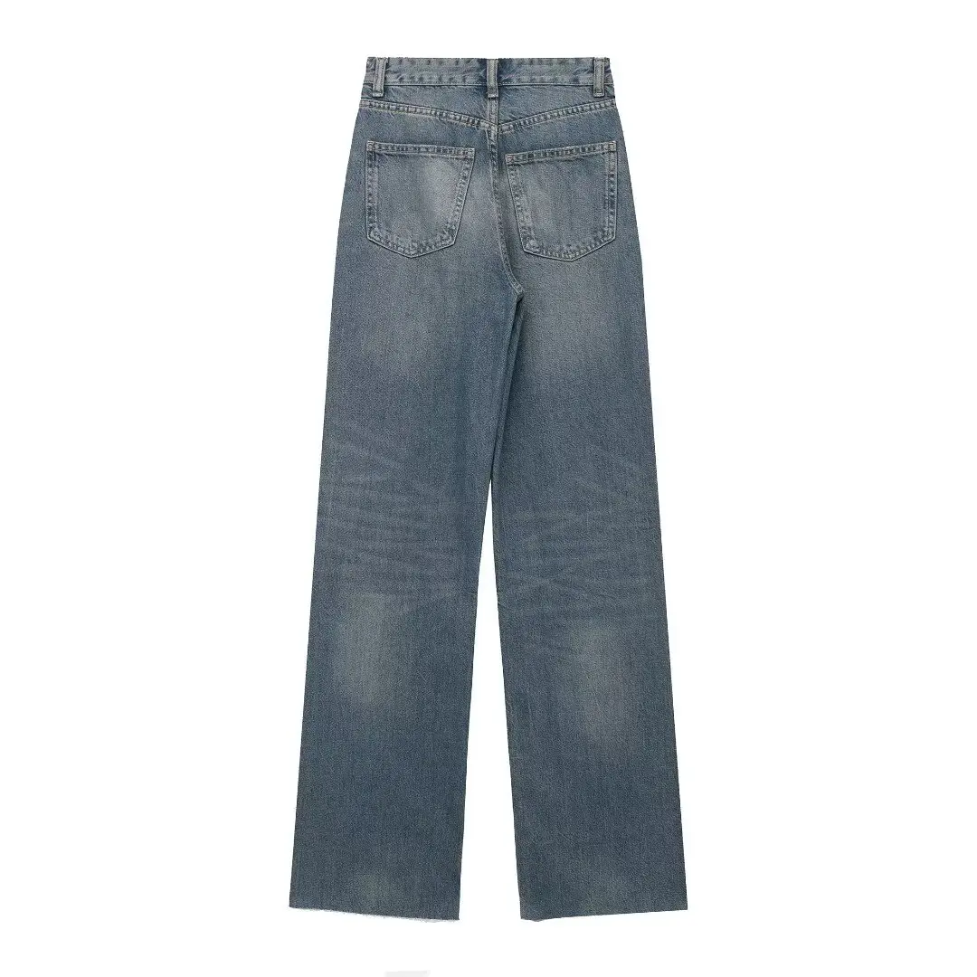 TRAFZA 2024 Women's Street Trendy Denim Jeans Deconstructed Trousers Embellished Mid-Waist Wide Leg Pockets Versatile Jeans