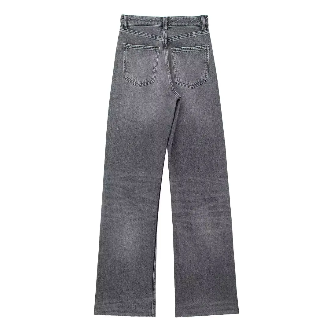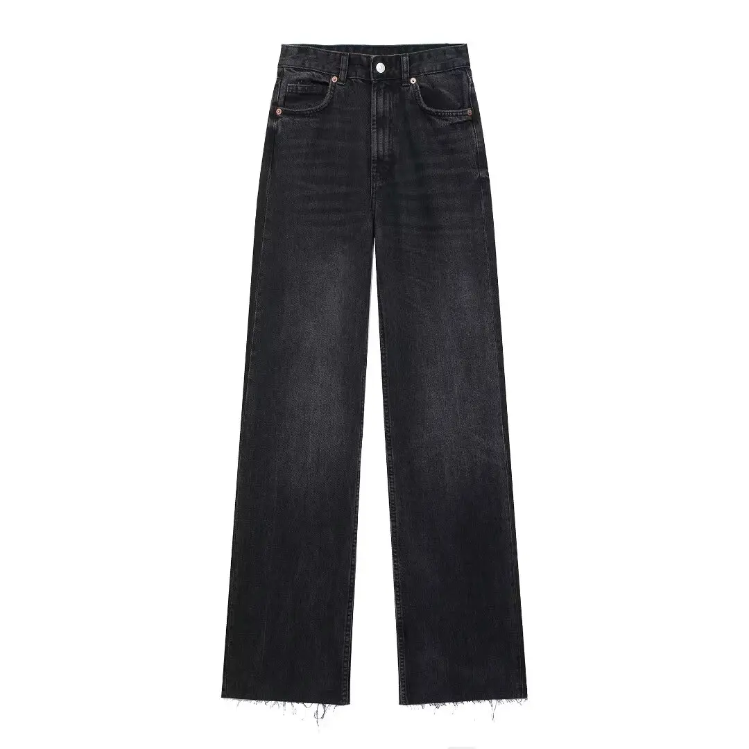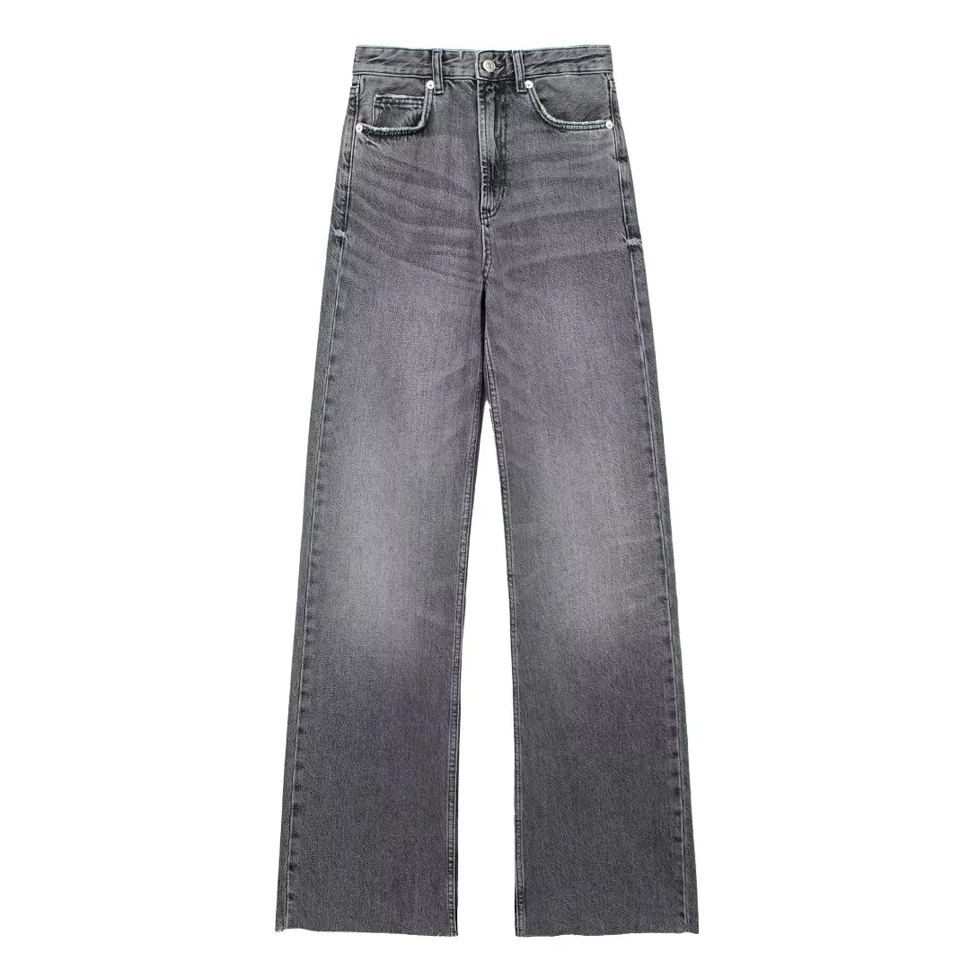 TRAFZA 2024 Women's Street Trendy Denim Jeans Deconstructed Trousers Embellished Mid-Waist Wide Leg Pockets Versatile Jeans