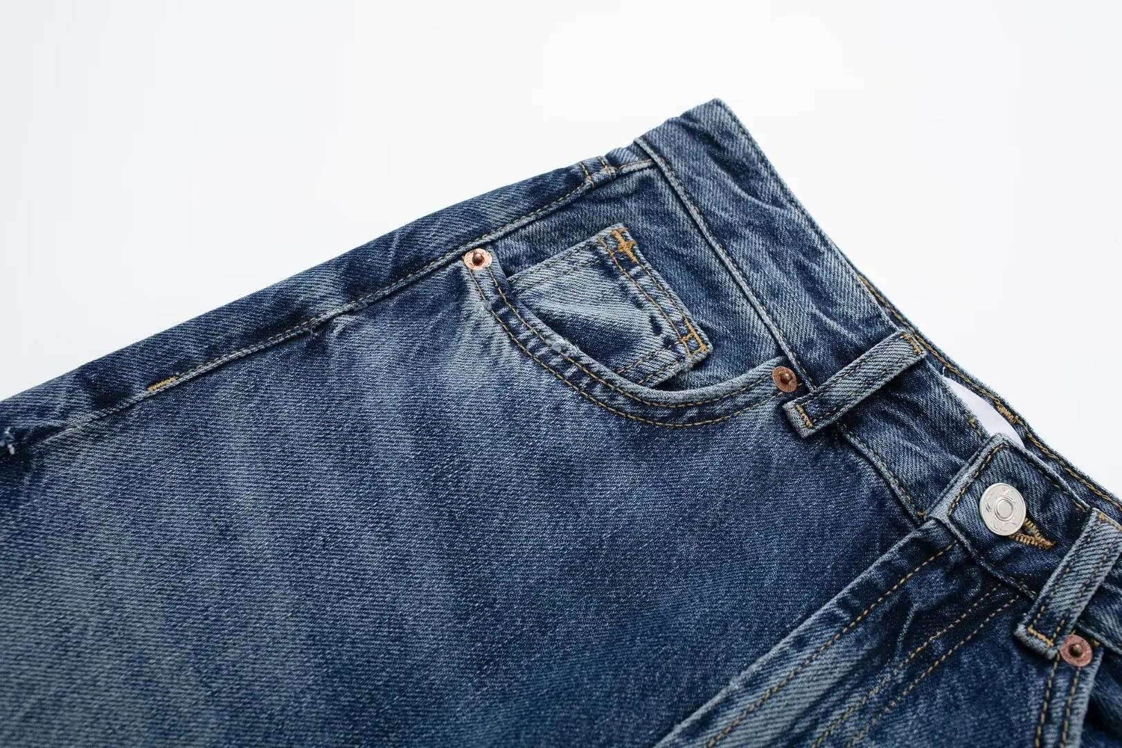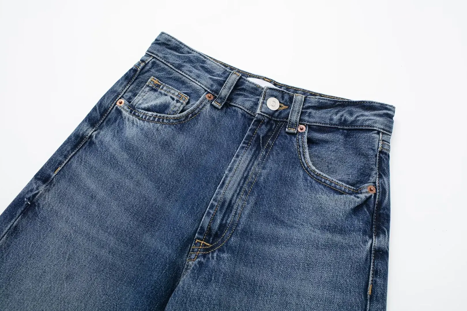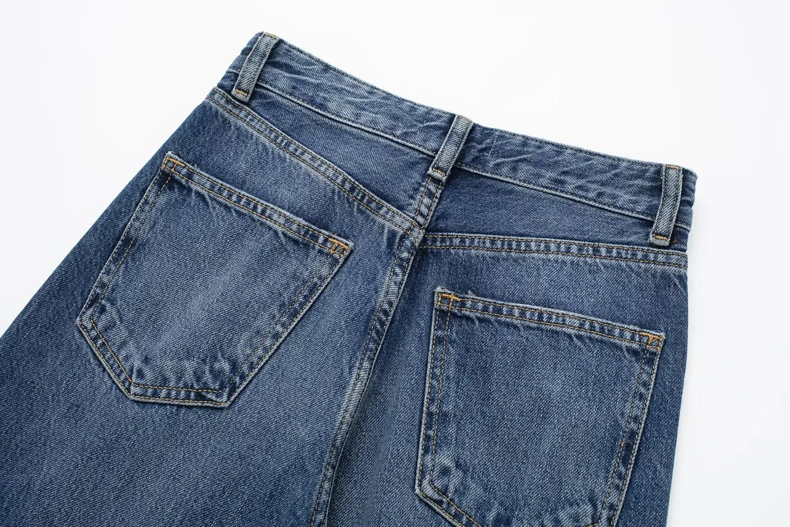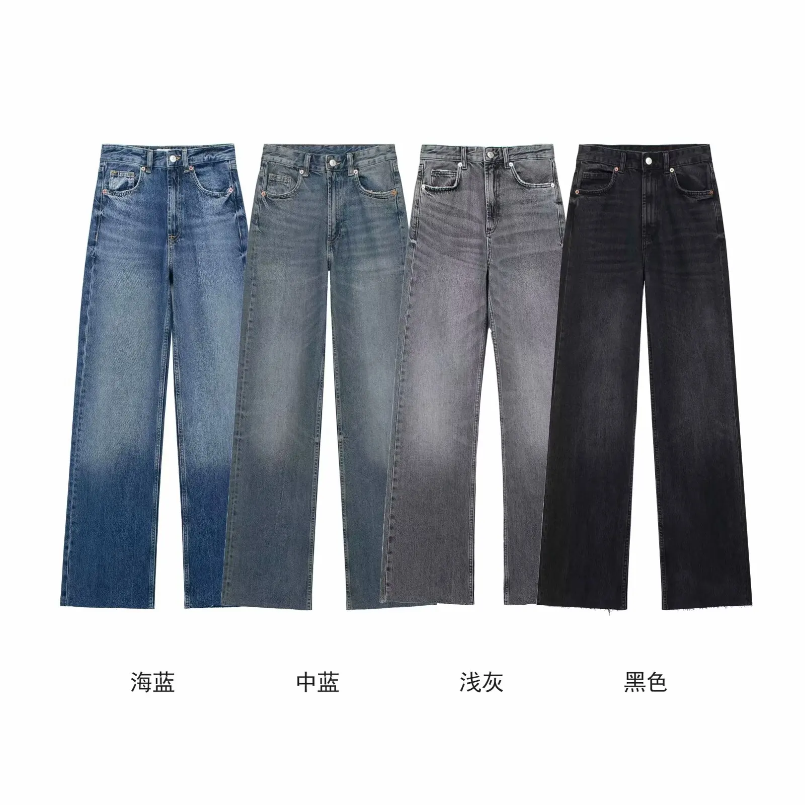 TRAFZA 2024 Women's Street Trendy Denim Jeans Deconstructed Trousers Embellished Mid-Waist Wide Leg Pockets Versatile Jeans