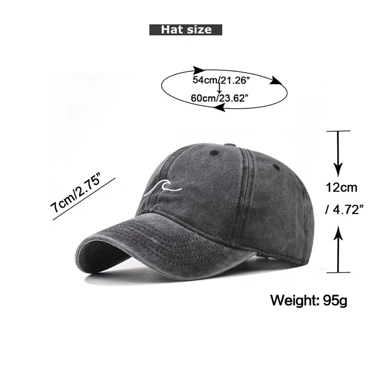 Washed Cotton Baseball Cap Solid Color Wave Embroidery Washed Hip Hop Hat Summer Men's Women's Outdoor Sports Snapback Sun Hats