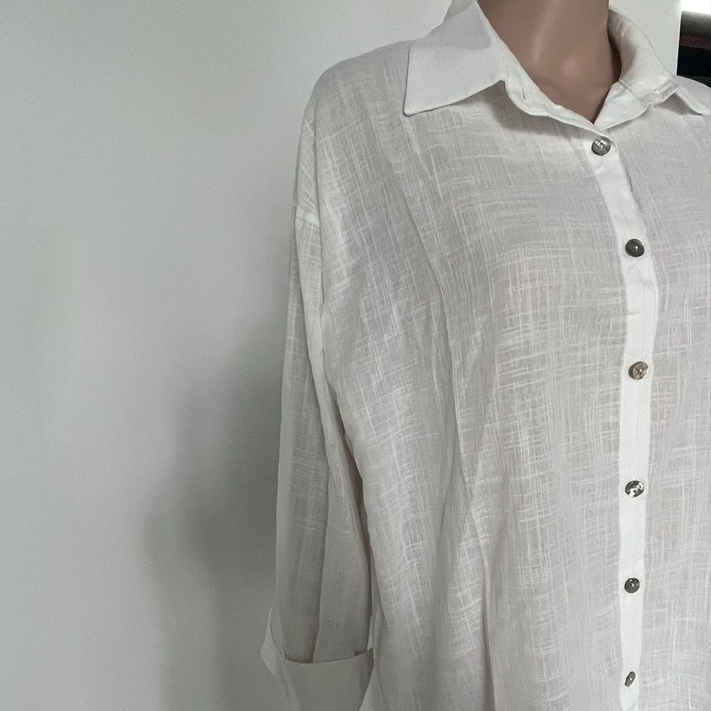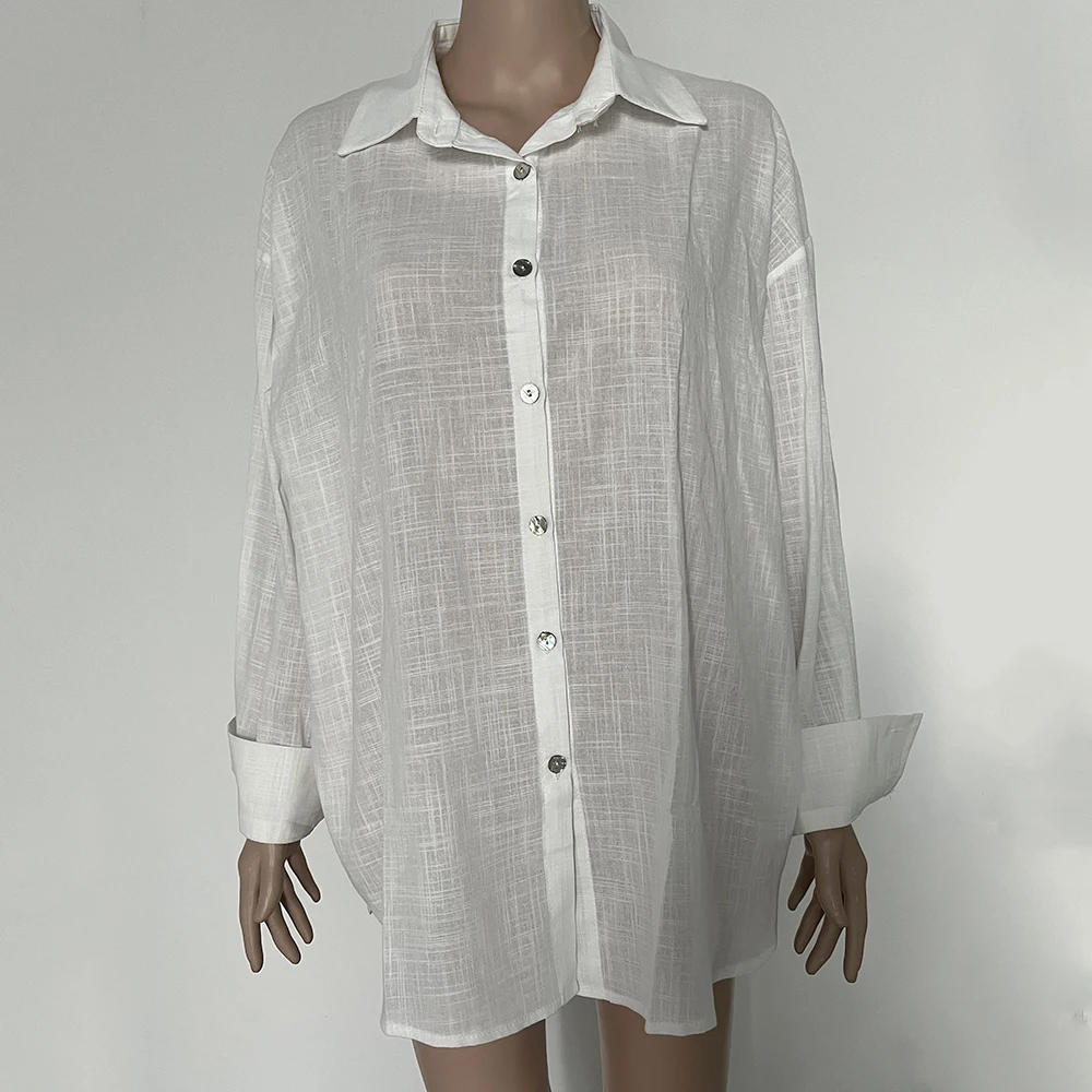 We.Fine Women's Linen Shirt Elegant Long Sleeve Blouse Spring Vintage Basic Top Collar Cotton Linen Shirt for Women