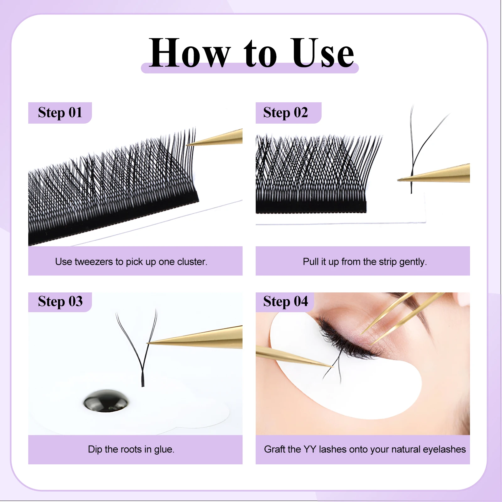 The Y lashes are made of quality PBT fiber,soft and light. YY shape