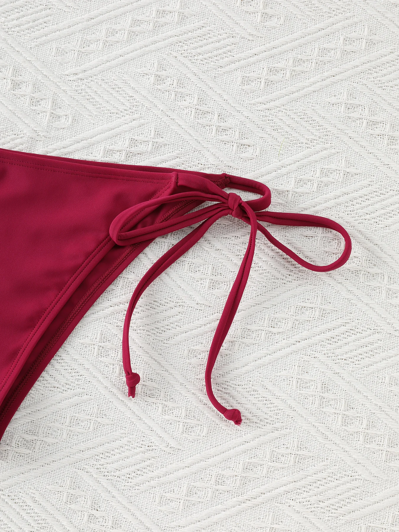 Women Thong Bikini Set Side Lace-up Sexy Swimsuit Bandage Neck Tie Swimwear Adjustable Brazilian Style Bikini Underwear