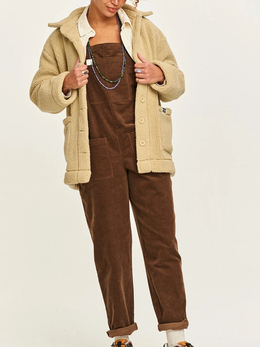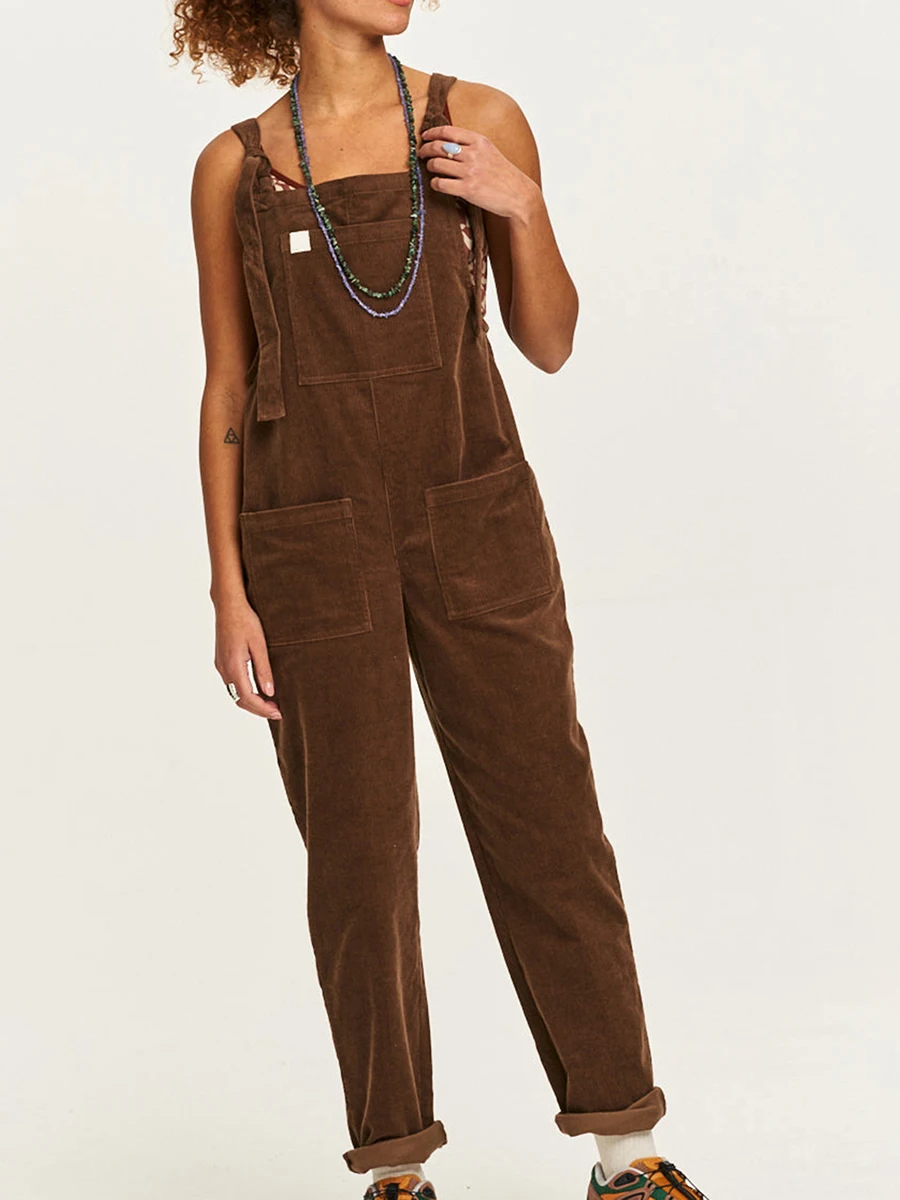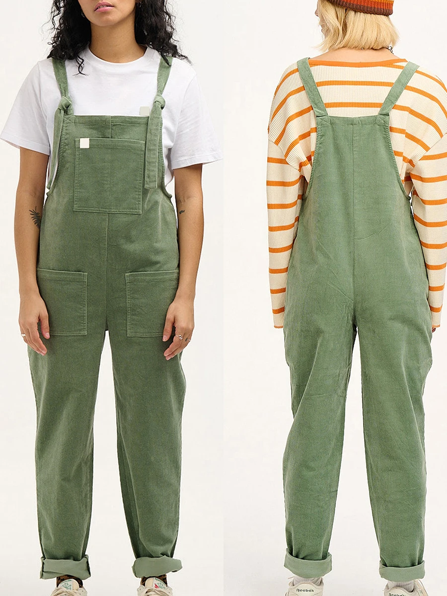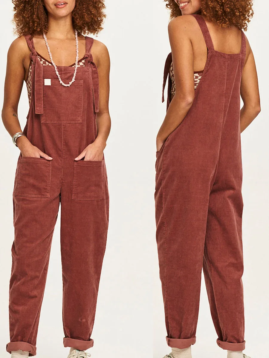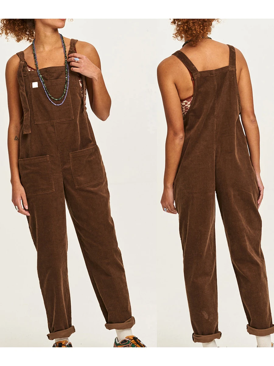 Women's Corduroy Overalls Solid Color Square Neck Pants Jumpsuit with Front Pockets Casual Streetwear