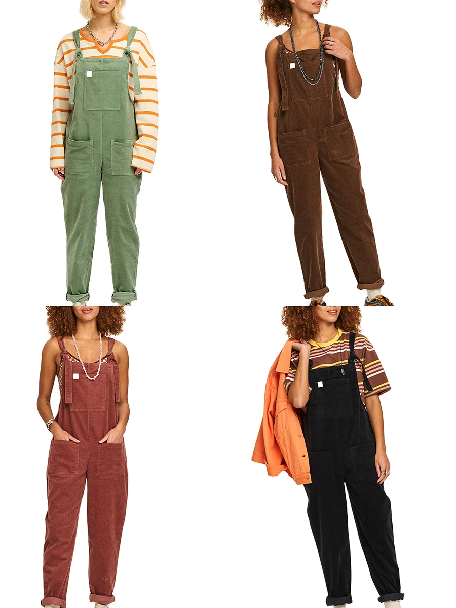 Women's Corduroy Overalls Solid Color Square Neck Pants Jumpsuit with Front Pockets Casual StreetwearSize (cm)