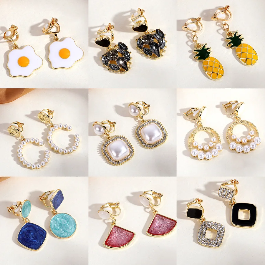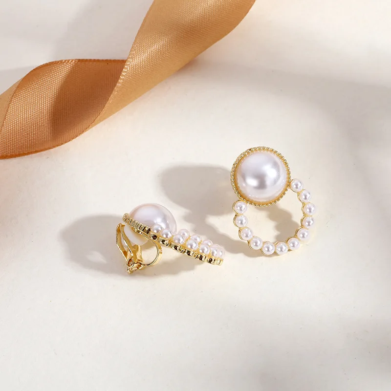 Women's Pearl Ear Clip Without Ear Hole Korean Edition Short Style Elegant Ear Hanger High End Light Luxury Square Earrings