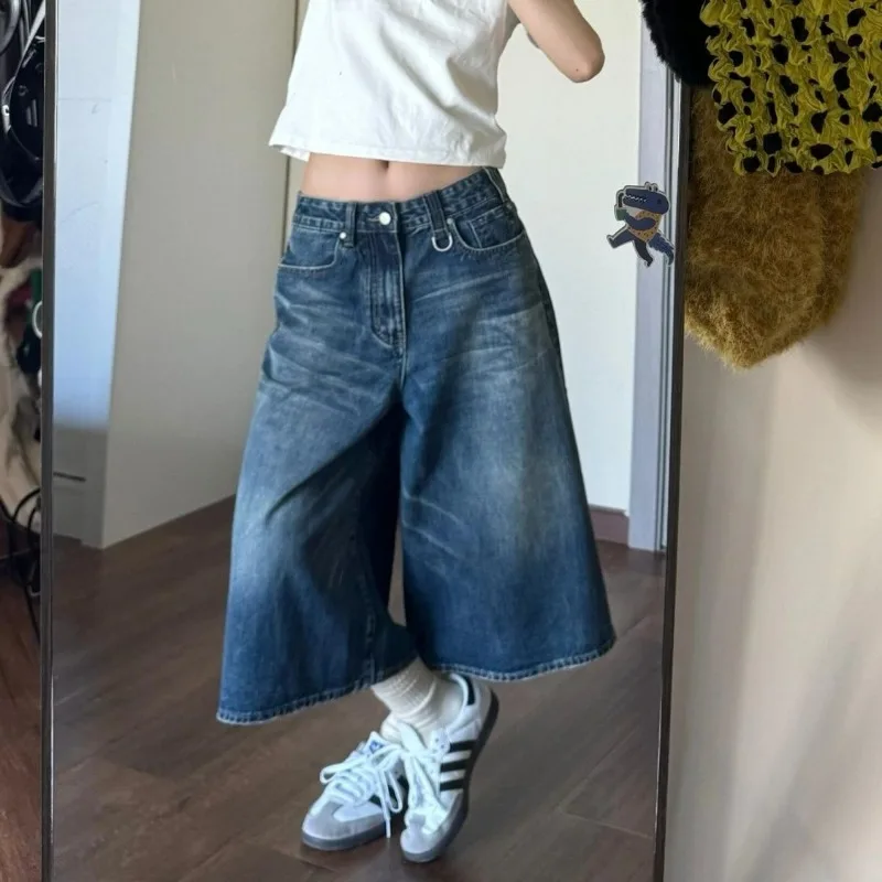 Women's Retro Wide Leg Baggy Casual Denim Shorts Harajuku Aesthetic Blue High Waist Shorts 2024 Summer Fashion Loose Fit Shorts
