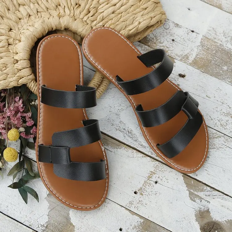 Women's Solid Color Slides, Lightweight Flat Slip On Walking Slides, Comfort Beach Slides
