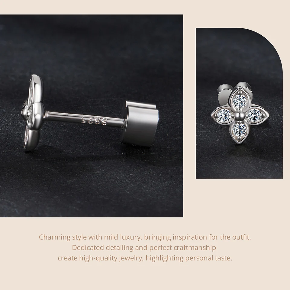 WOSTU Moissanite Mini Butterfly Clover Earrings 925 Silver Diamoind Cut Wedding Party Ear Studs Party Gift For Mom Daughter