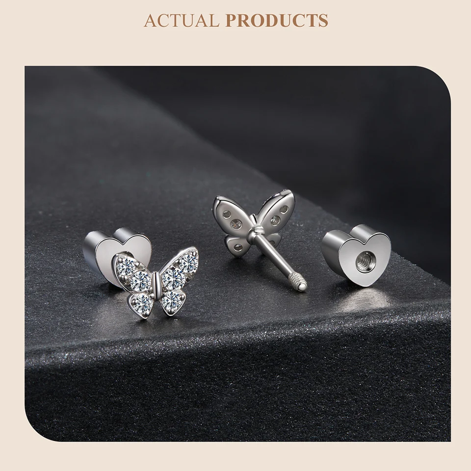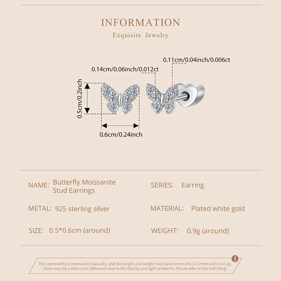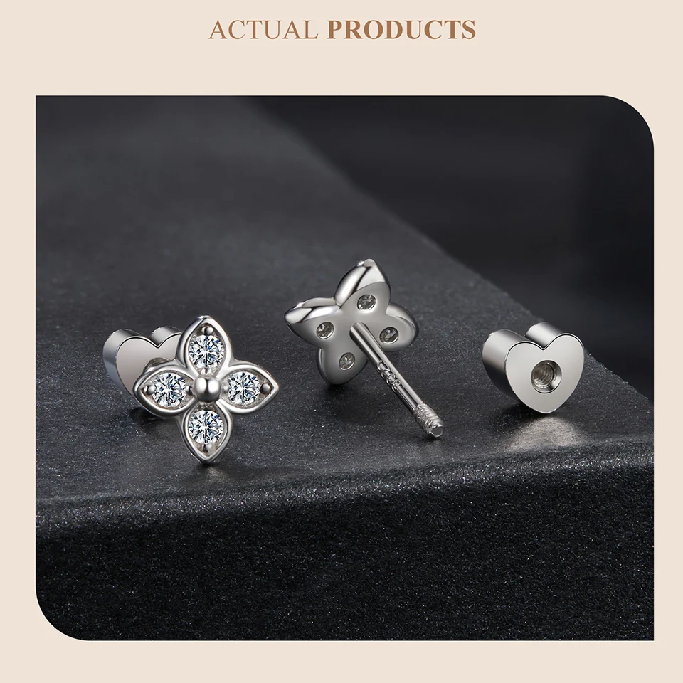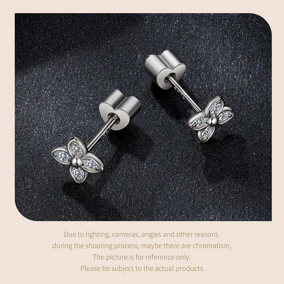 Certificate Number: WOSTU Moissanite Mini Butterfly Clover Earrings 925 Silver