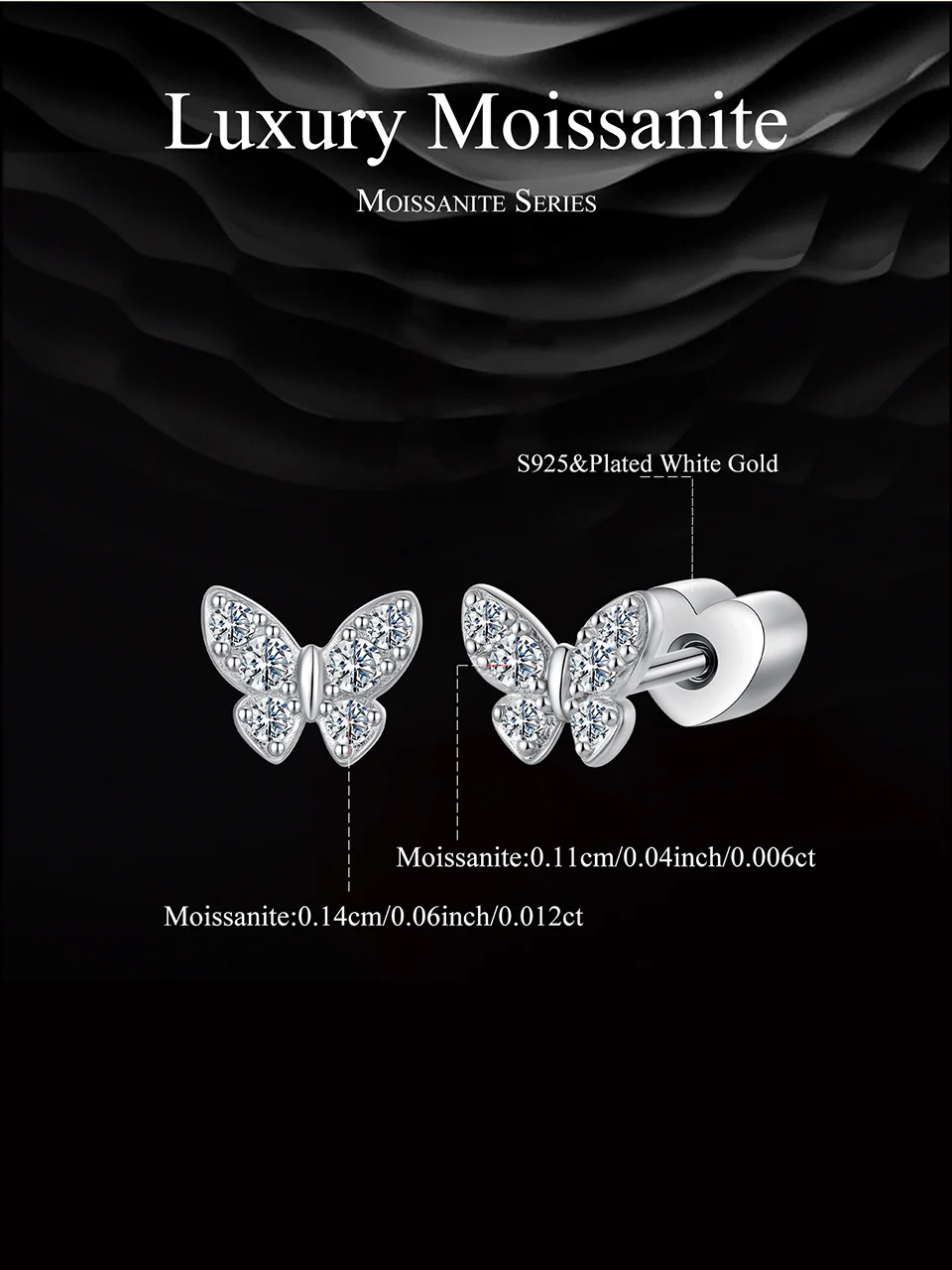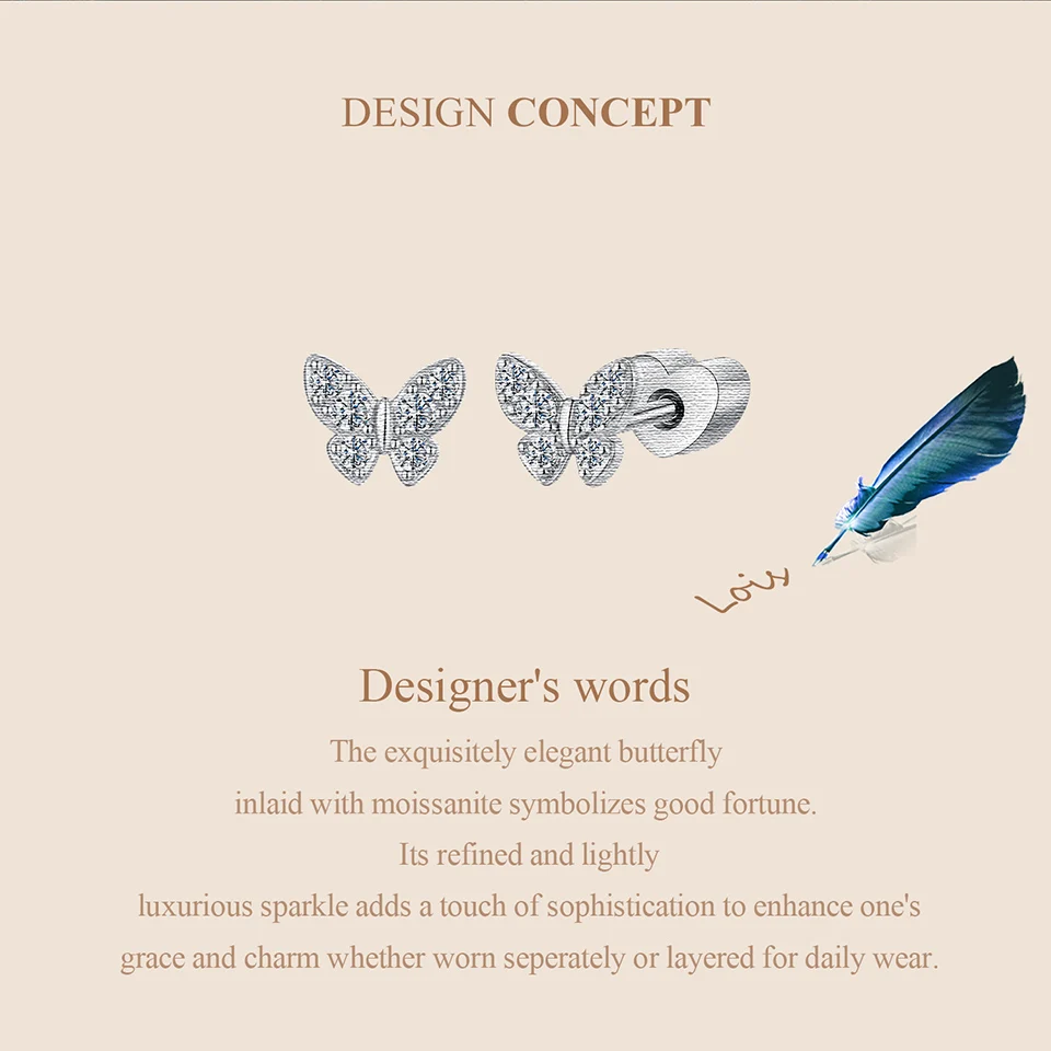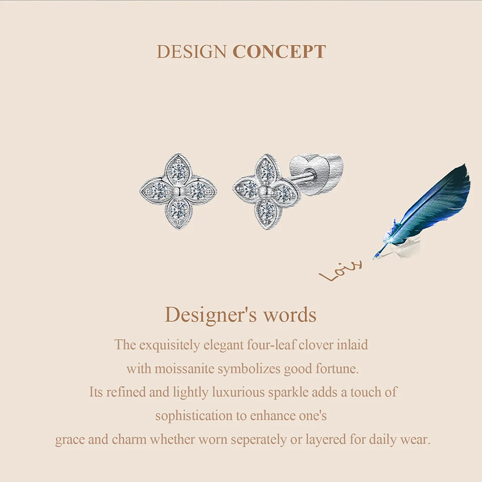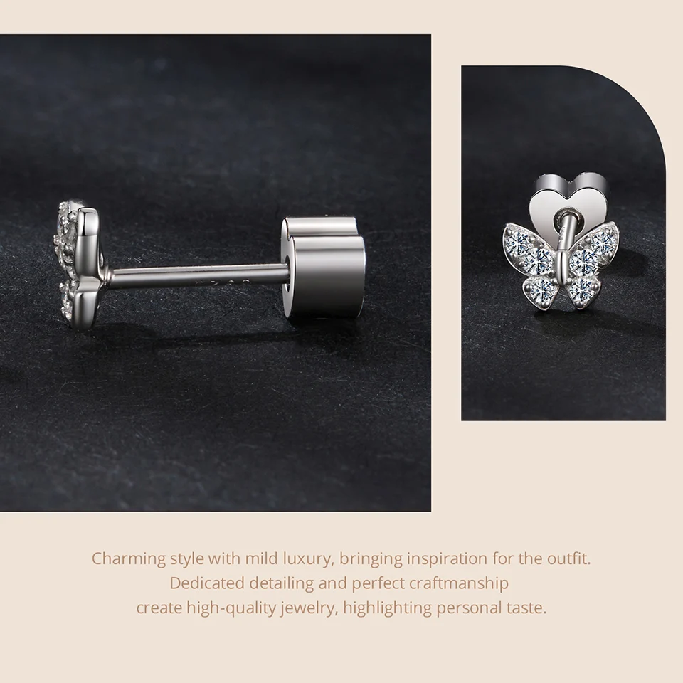 Certificate Number: WOSTU Moissanite Mini Butterfly Clover Earrings 925 Silver