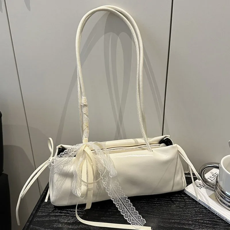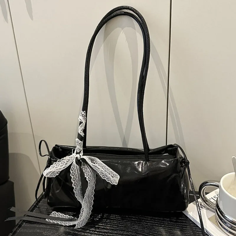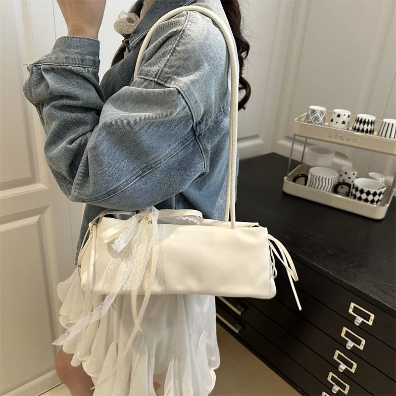 Y2K Lace Bow Handbag French Elegant Square Bags Simple Ballet Style Shoulder Bag New Korean Fashion Casual Women Packet for Date