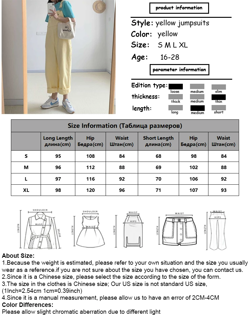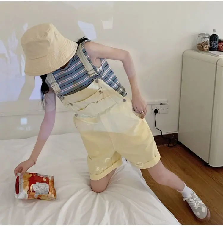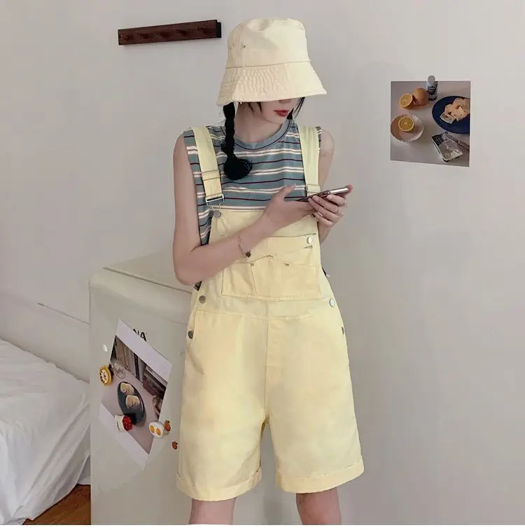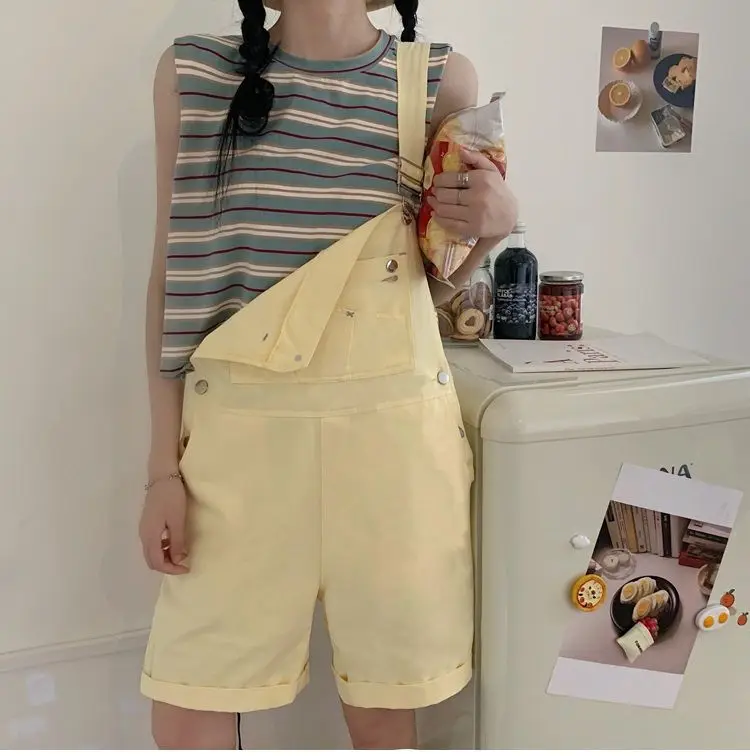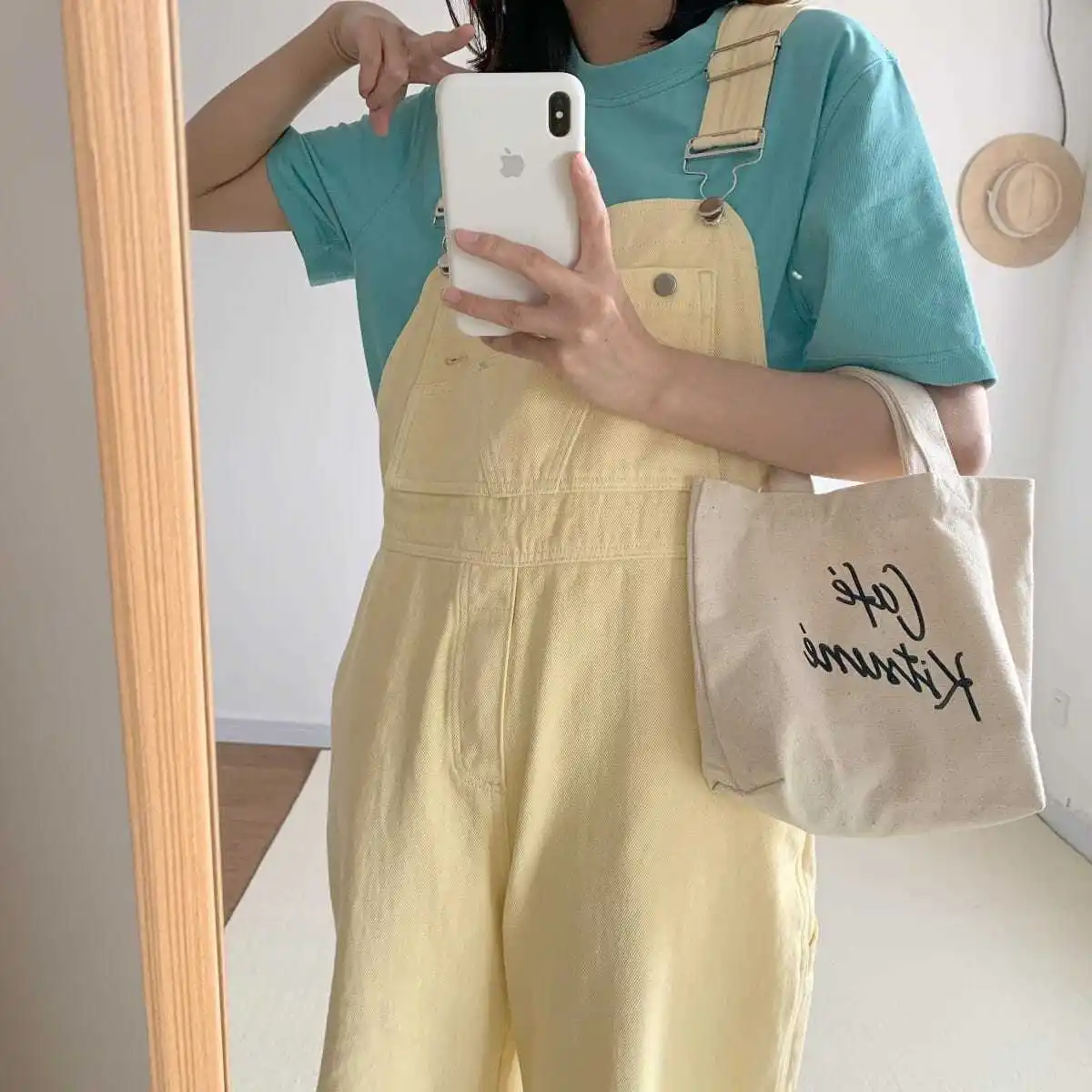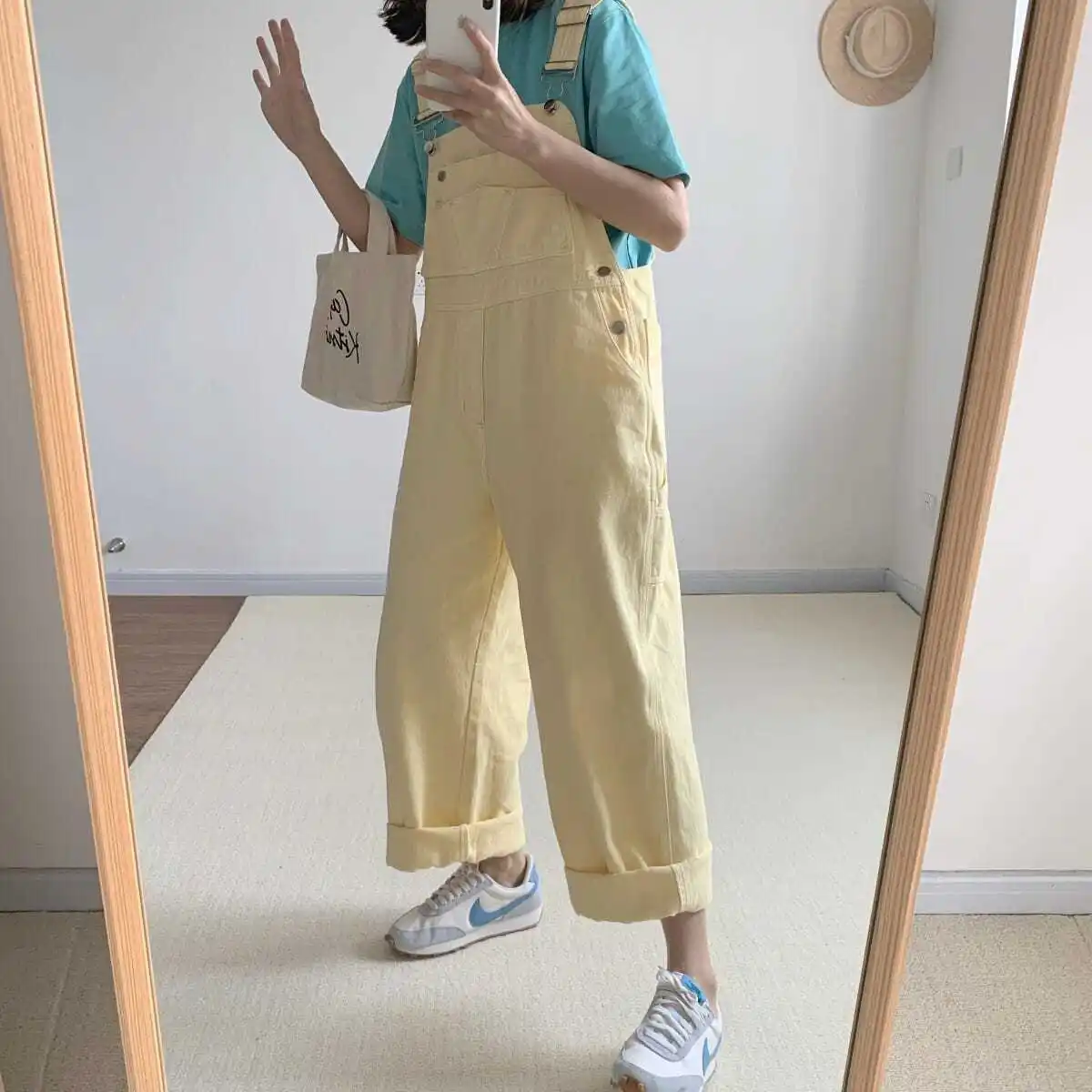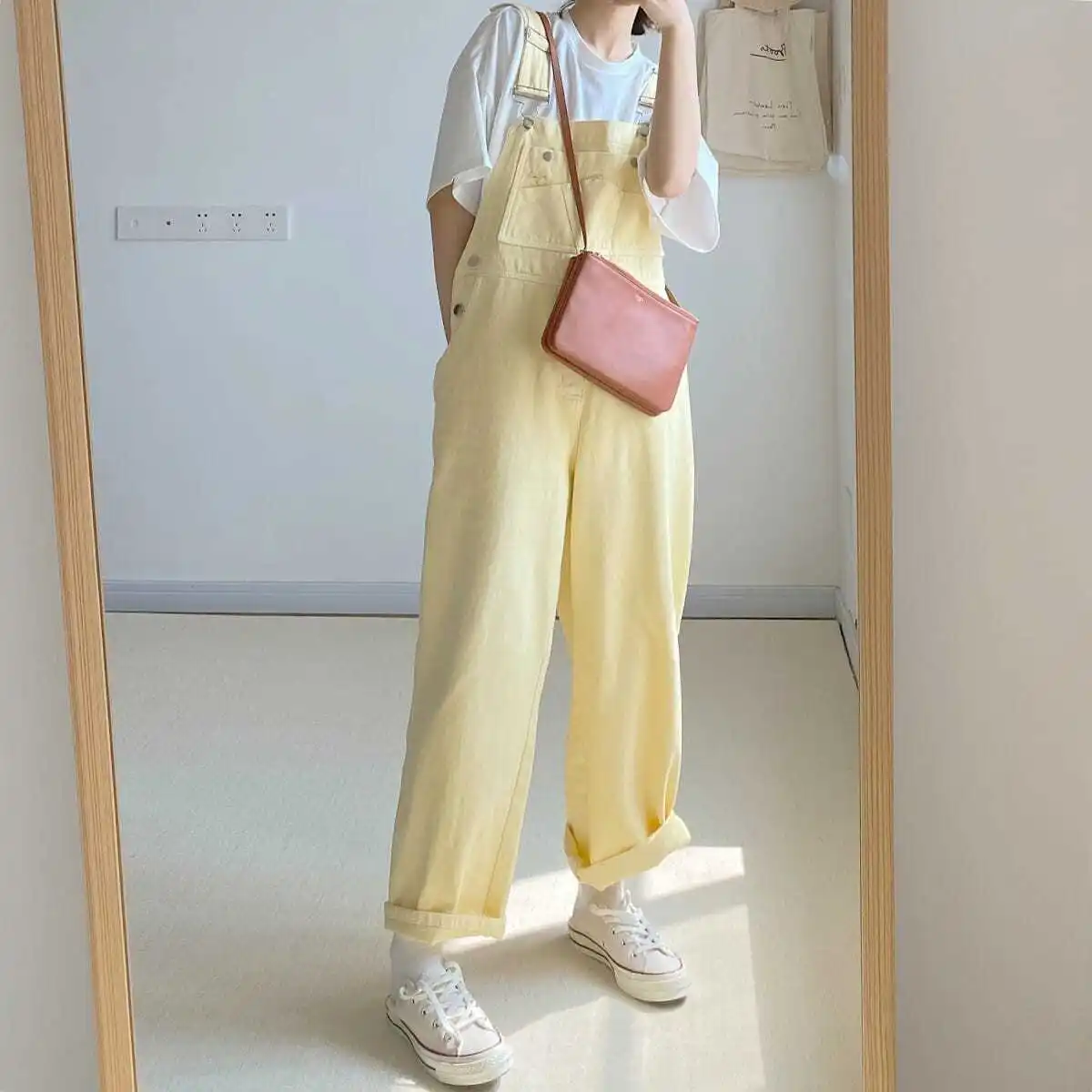 Yellow Overalls Women Summer New Sweet Cute Jumpsuit Woman Strap Pants Straight Wide Leg Pant Female