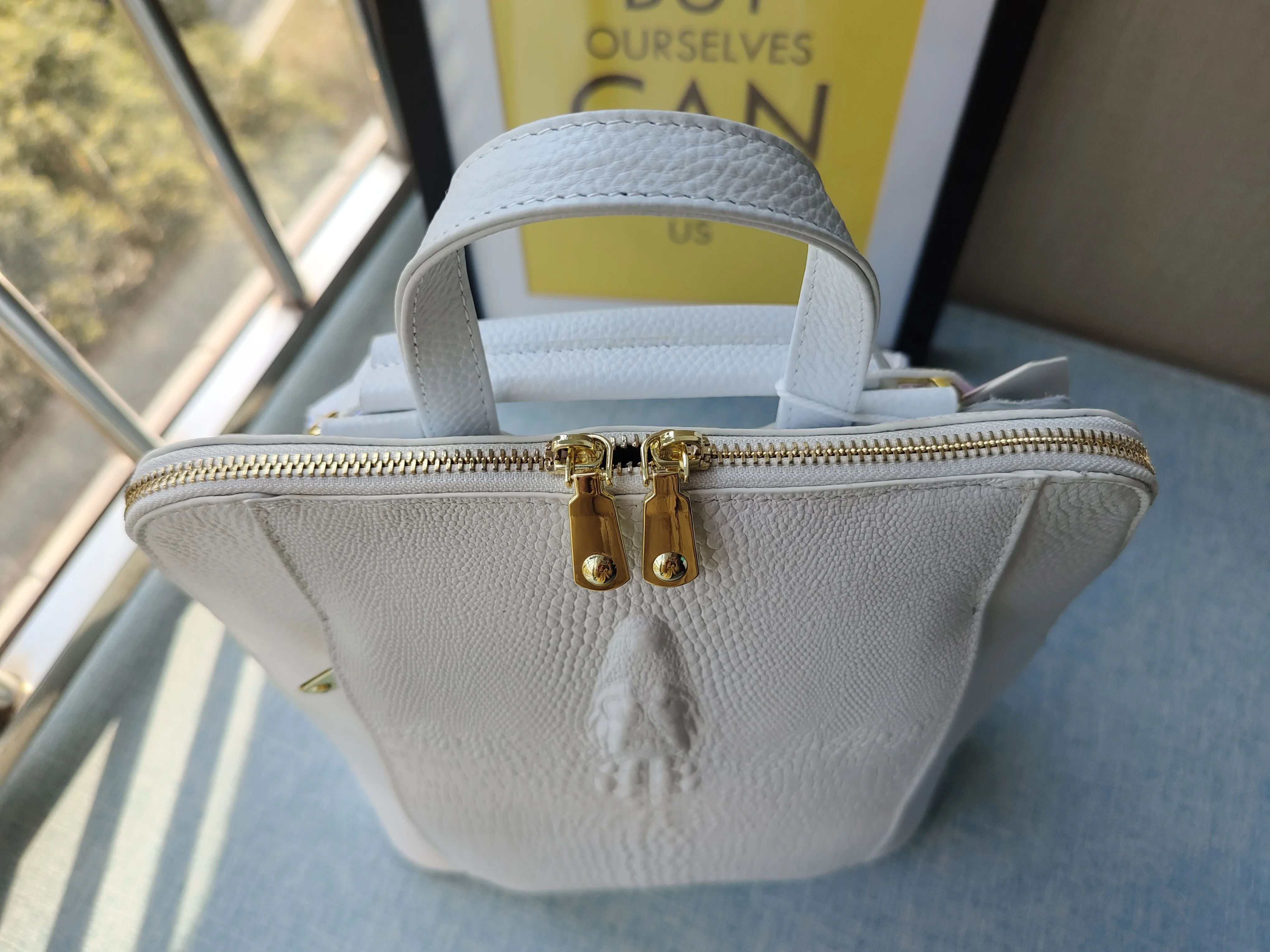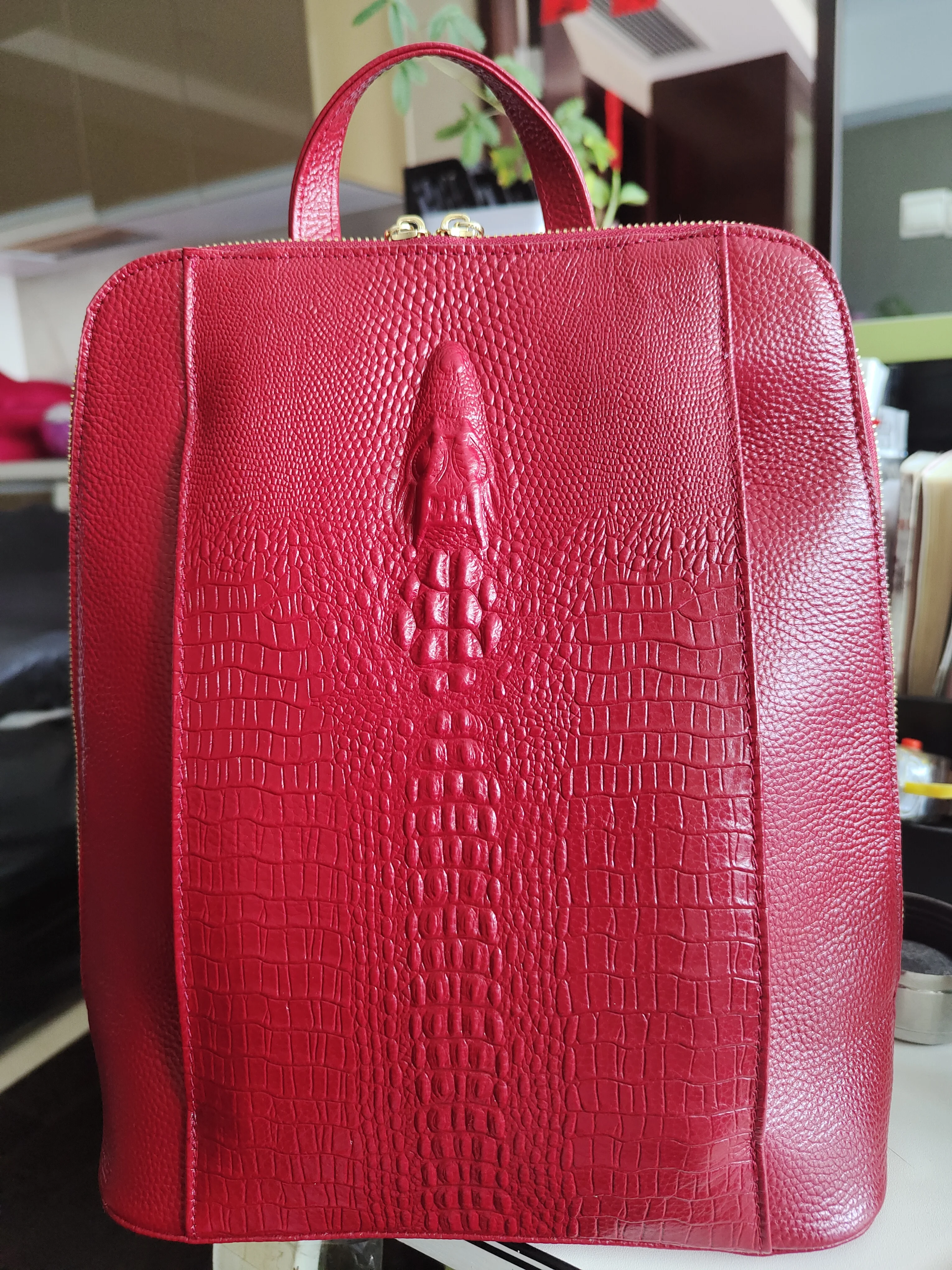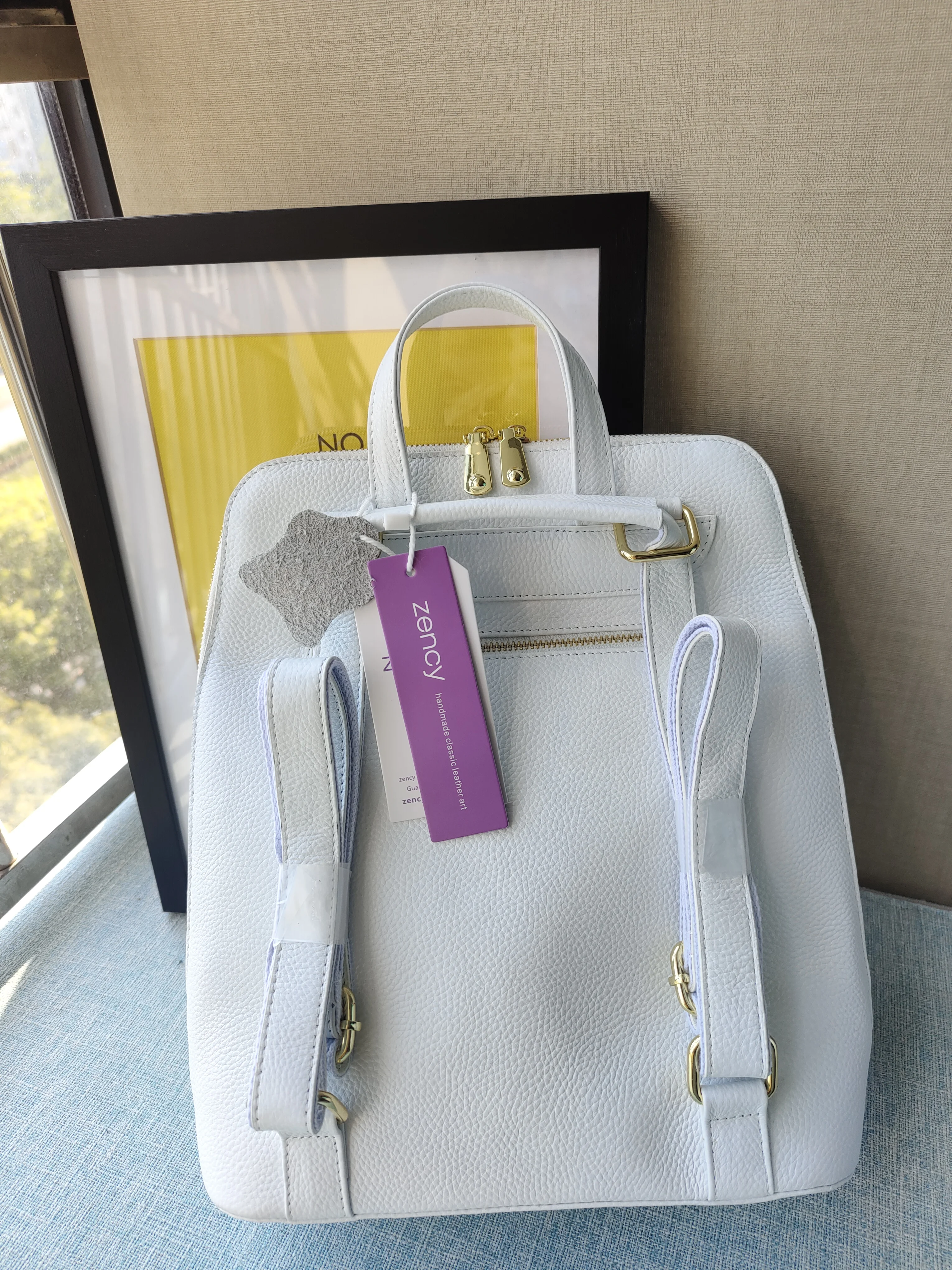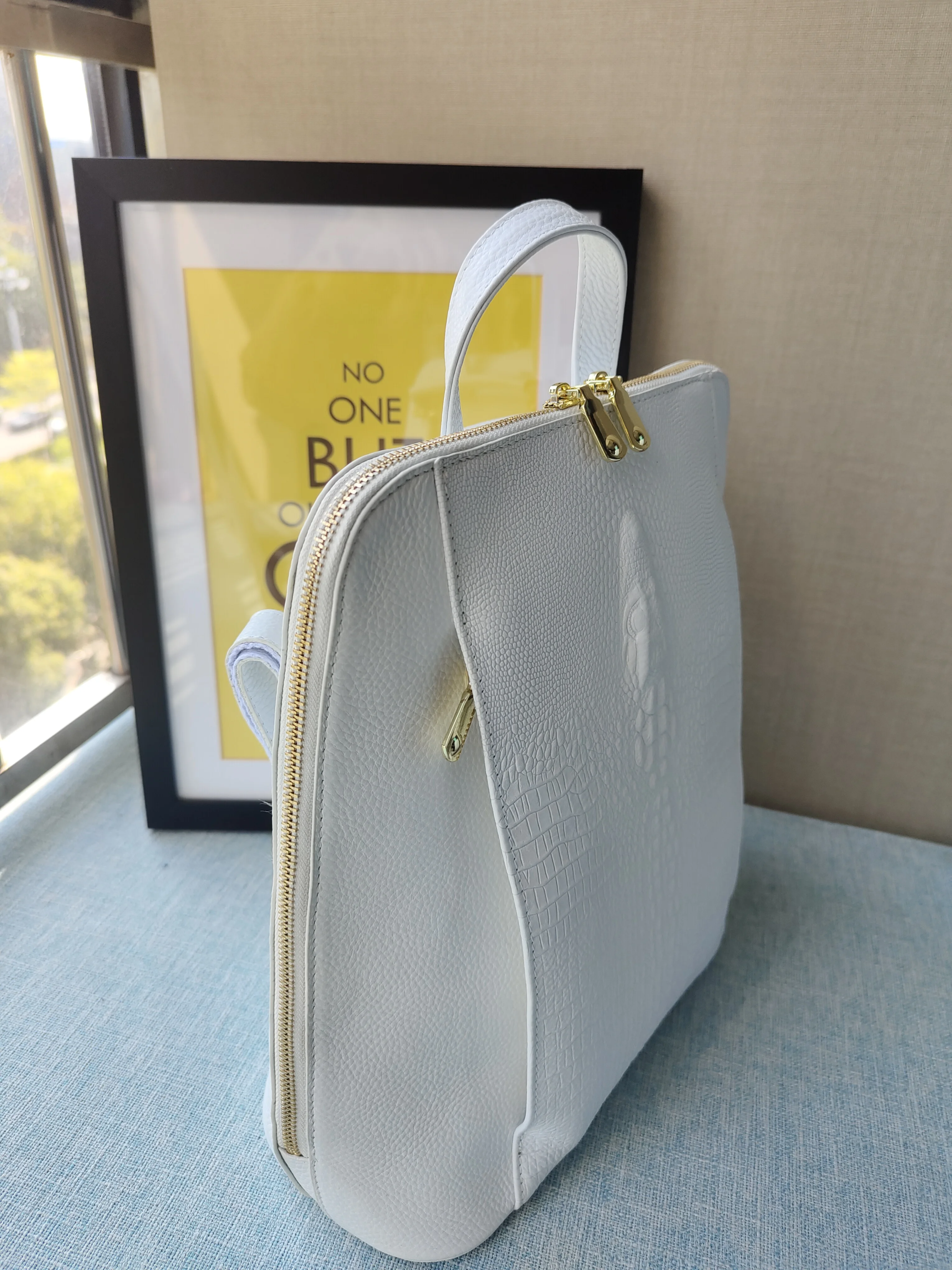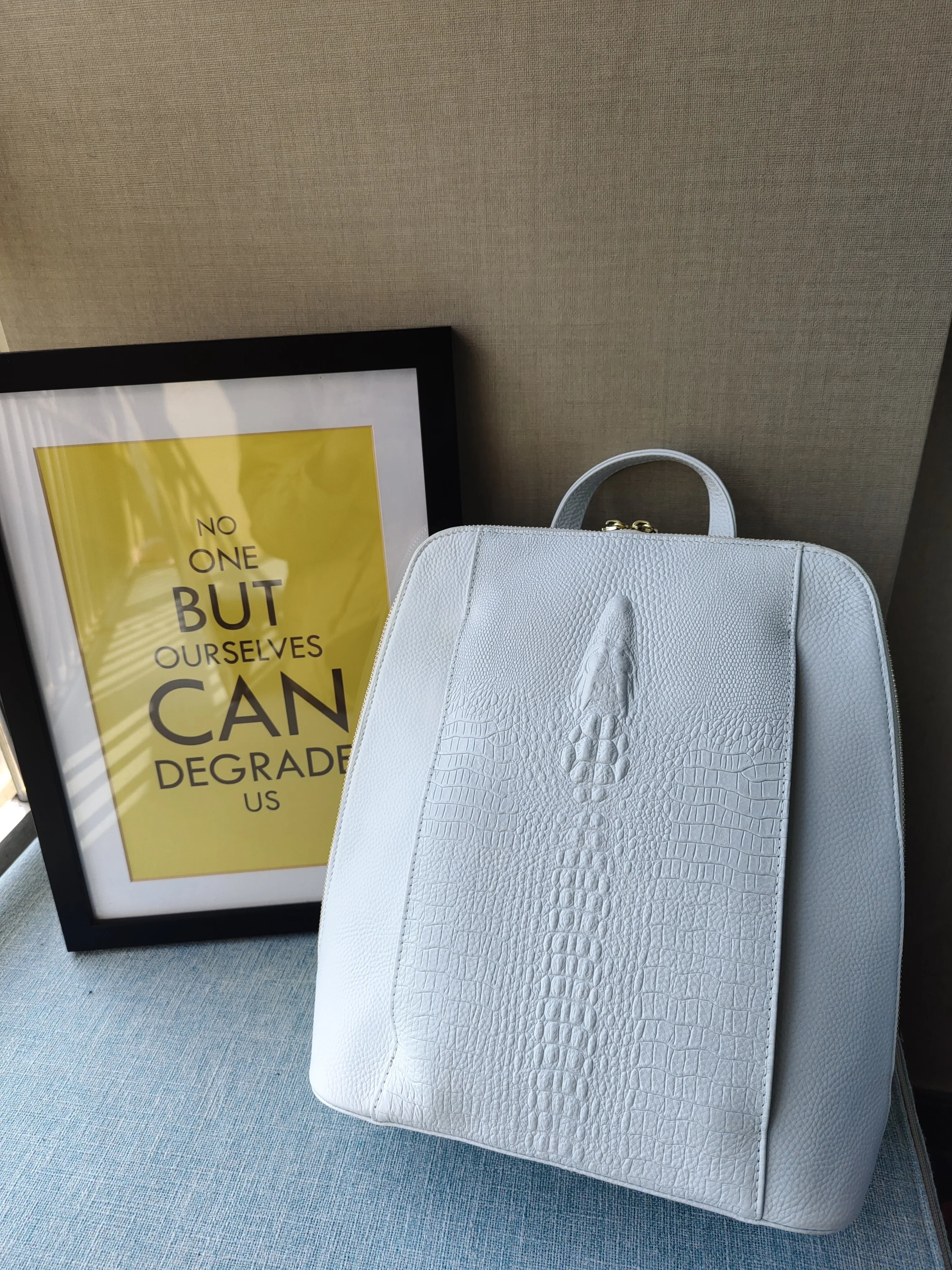 Zency 100% Genuine Leather Pure White Knapsack Ladies Crocodile Pattern Women Backpack Fit A4 Magazine Laptop